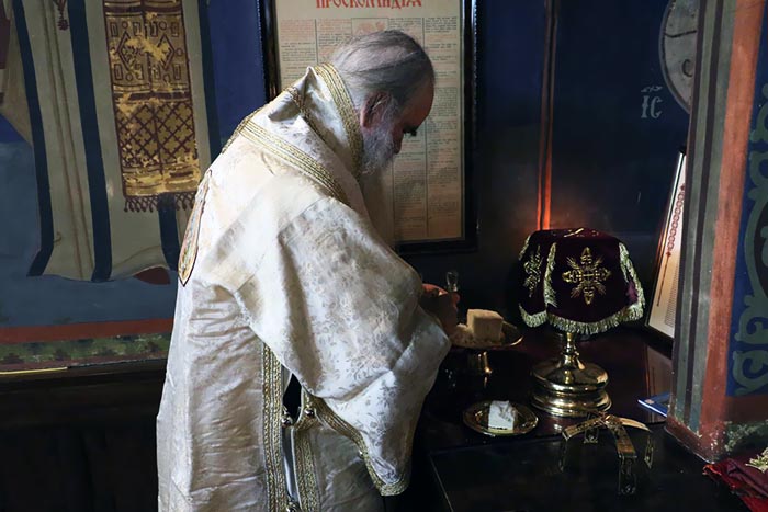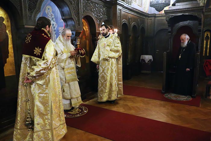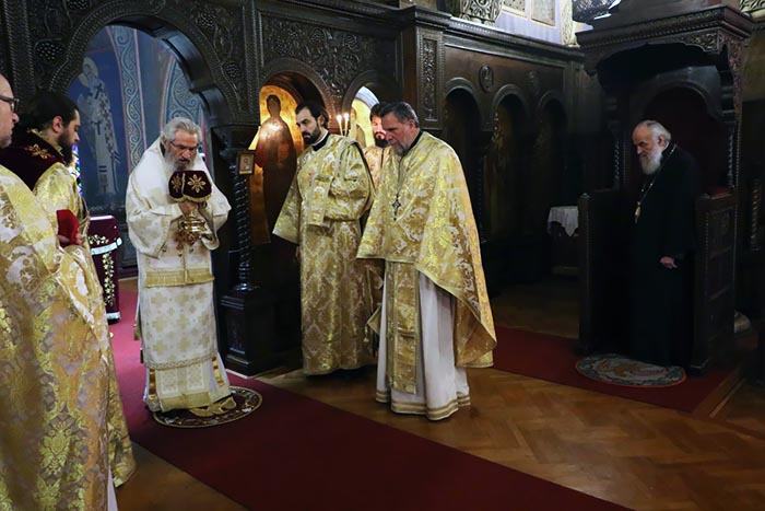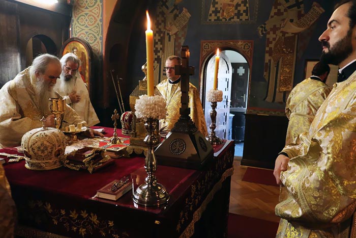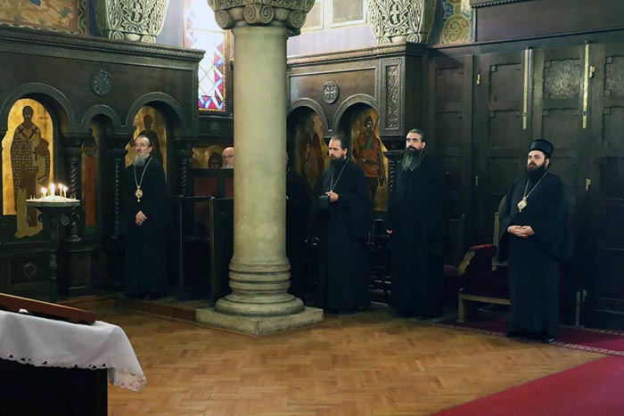 У молитвеном присуству Његове Светости Патријарха српског г. Иринеја и архијереја сабраних на заседању Светог Сабора Српске Православне Цркве, саслуживали су Преосвећни Епископ шумадијски г. Јован, протојереји-ставрофори Драгомир Сандо и Драган Предић, протођакон Дамјан Божић и ђакон Ненад Ристић.