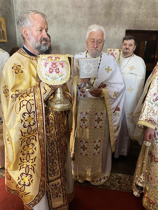 Сабранима се обратио и протојереј-ставрофор Милун Фемић, свештеник у пензији, честитајући свима празник, а имендан Владици Јоаникију. Отац Милун је недавно прославио педесет година свештеничке службе, коју је започео у родним Беранама, у манастиру Ђурђеви Ступови.