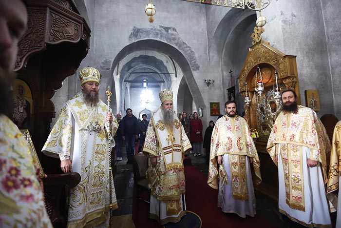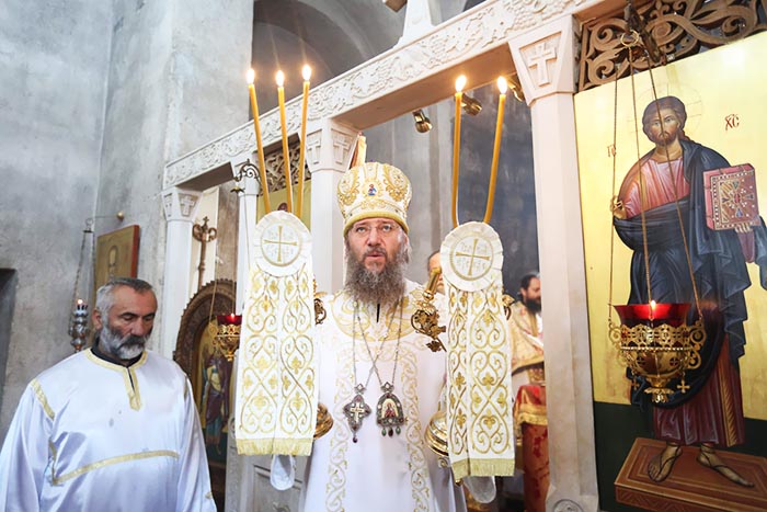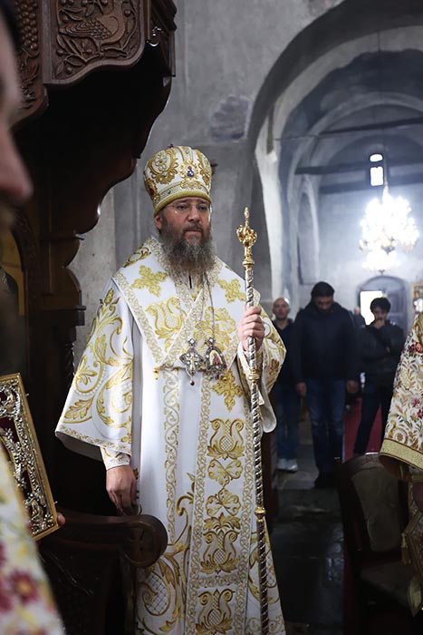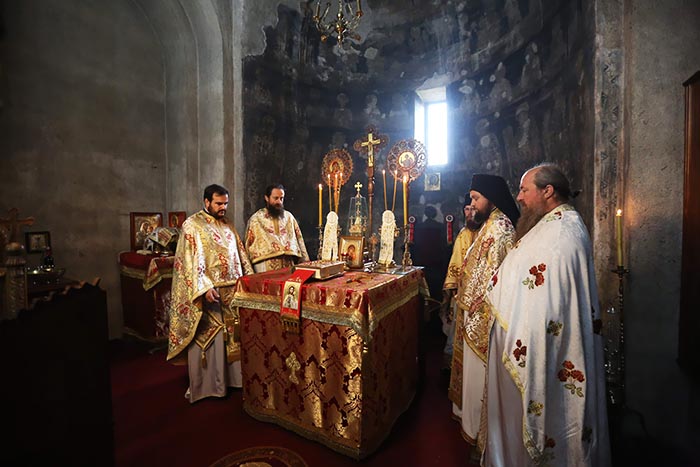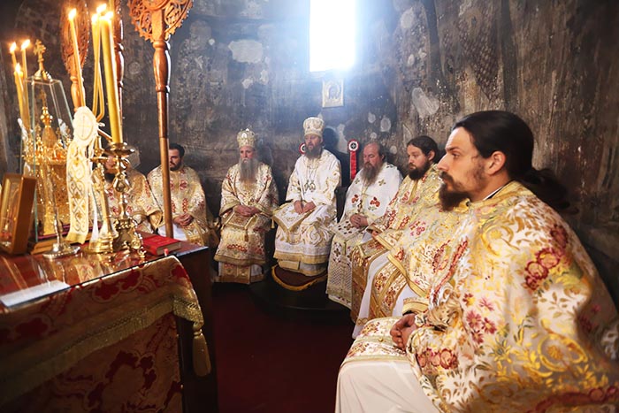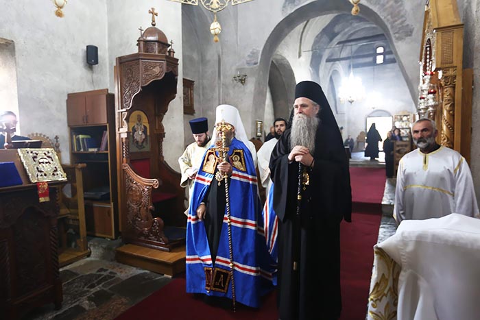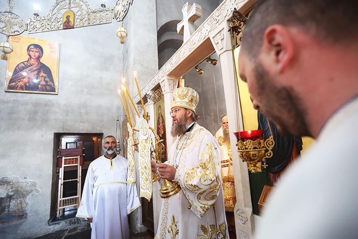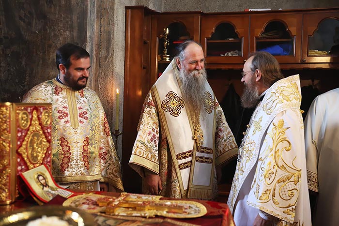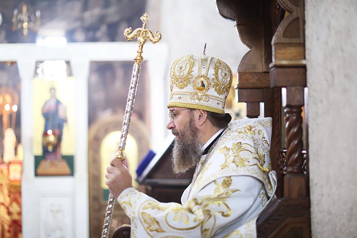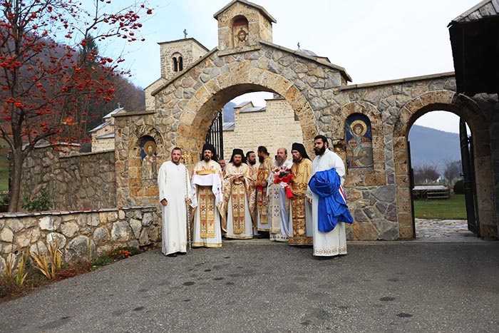 „Ваше Високопреосвештенство добродошли у ову нашу древну светињу. Донијели сте нам велику радост, нарочито зато што нас је Бог удостојио да заједно данас принесемо Господу Богу нашем бескрвну жртву, да се причестимо заједно Светим Тајнама Христовим и да се сјединимо у љубави Божјој“, рекао је Владика.