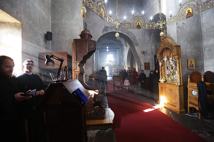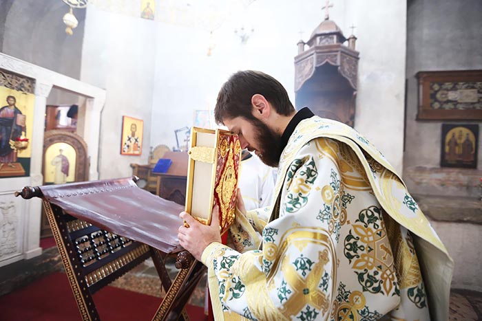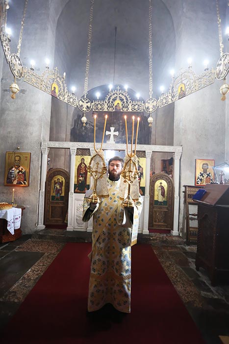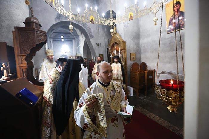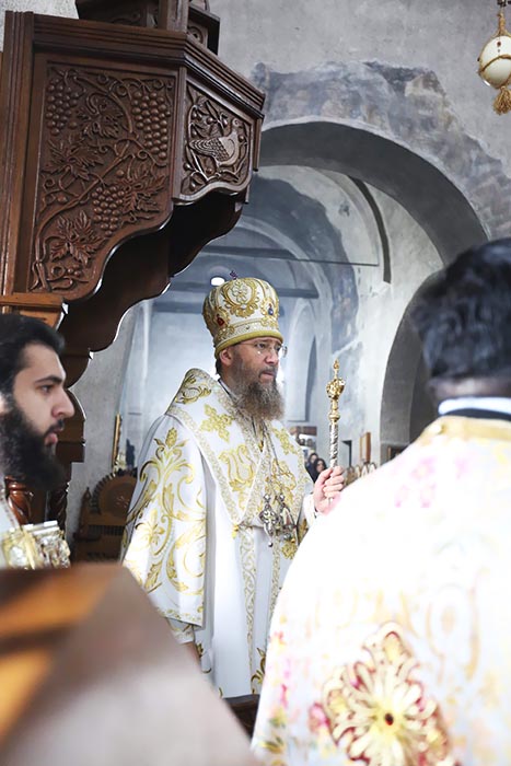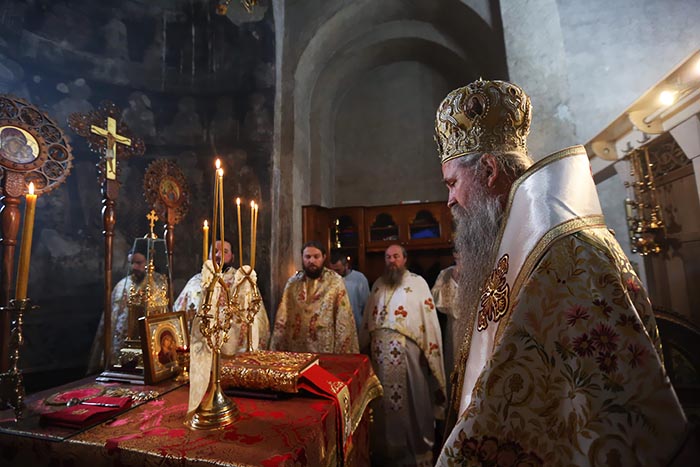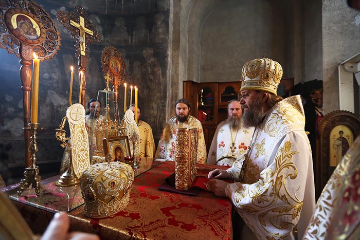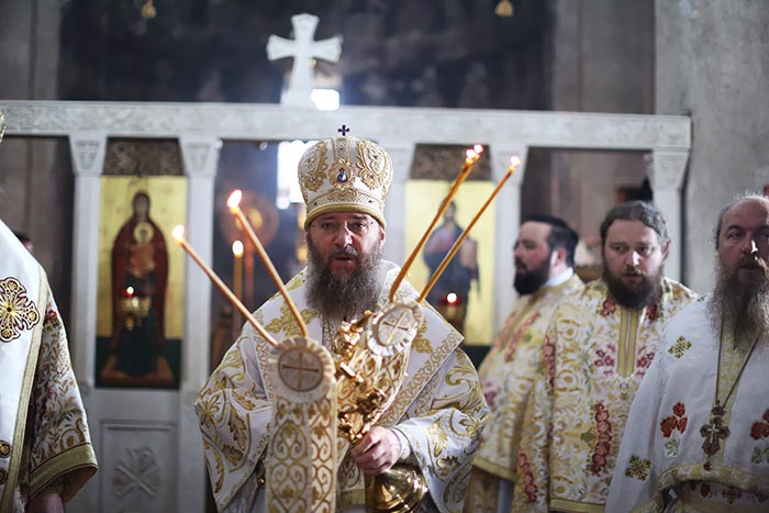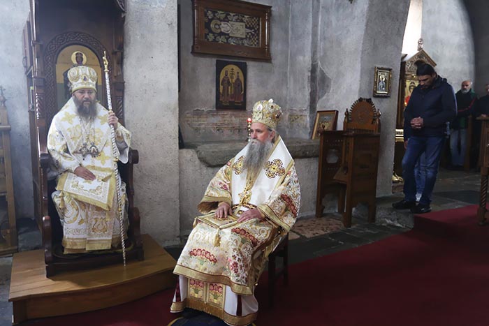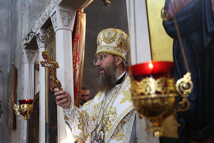 „Ваше Високопреосвештенство добродошли у ову нашу древну светињу. Донијели сте нам велику радост, нарочито зато што нас је Бог удостојио да заједно данас принесемо Господу Богу нашем бескрвну жртву, да се причестимо заједно Светим Тајнама Христовим и да се сјединимо у љубави Божјој“, рекао је Владика.