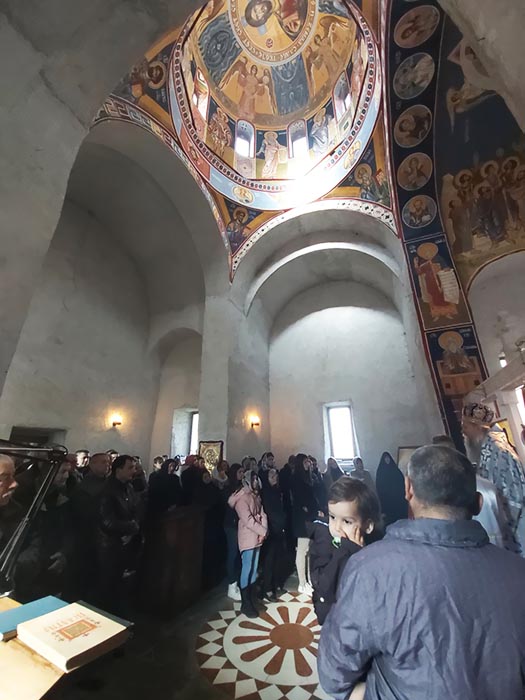 Сабранима се ријечима празничне бесједе обратио Преосвећени Епископ Јоаникије, осврнувши се, најприје, на дио из прочитаног Јеванђеља, које говори о доласку Исуса Христа у Гадаринску земљу и сусрету са човјеком кога су дуго времена мучили демони.