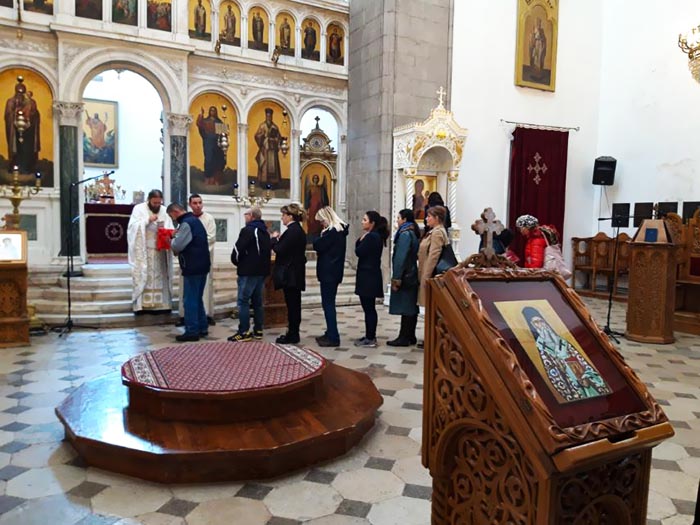 Литургију је служио протојереј-ставрофор Слободан Јокић, архијерејски намјесник никшићки уз присуство вјерног народа, који су се заједно са свештеником помолили Господу и Његовом великом угоднику овог времена, Светом Нектарију за исцјељење и заступништво пред Господом.