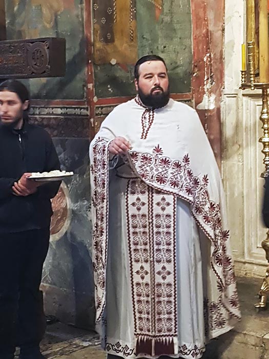 Литургију, крај моштију Светог краља Стефана Дечанског, служио је јеромонах Сава (Вукајловић), сабрат манастира Ђурђеви Ступови уз саслужење дечанског братства и других гостијућих свештенослужитеља.