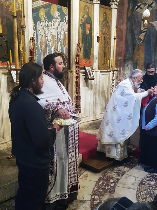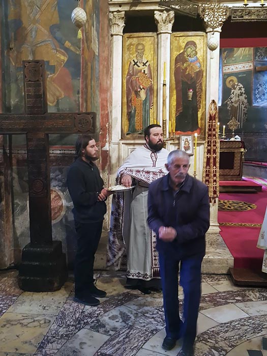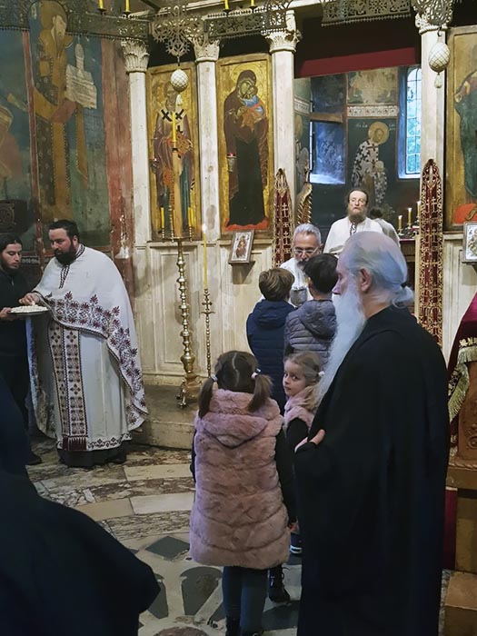 Архимандрит Сава (Јањић), игуман манастира Високи Дечани, пожелио је добродошлицу гостима данашњег евхаристијског сабрања. Он је оцу Сави из манастира Ђурђеви Ступови и свештенству захвалио на љубави са којом долазе у ову светињу и братским везама, које се одржавају и сваким даном све више учвршћују.