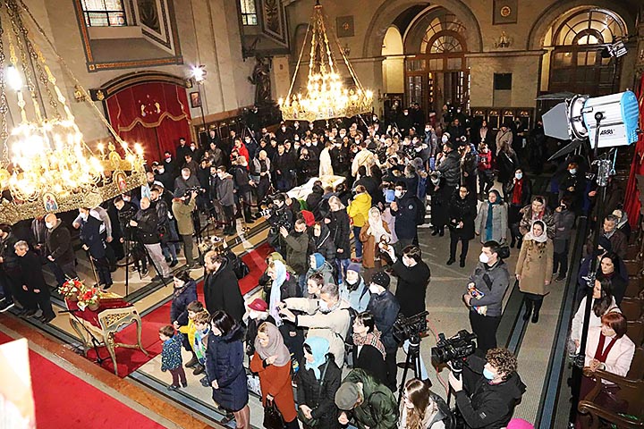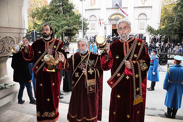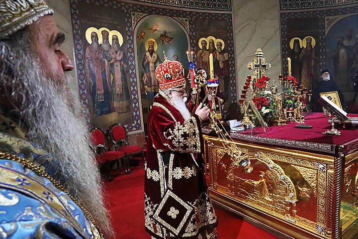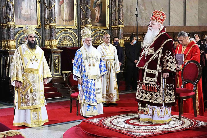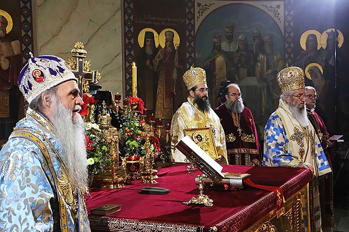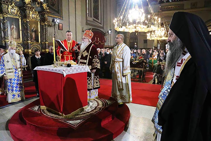 У Саборном храму Светог архангела Михаила у Београду, пред телом блаженоуснулог у Господу патријарха и оца нашег Иринеја, свету заупокојену архијерејску Литургију служио је Његово Високопреосвештенство Митрополит дабробосански г. Хризостом уз саслужење Преосвећене господе Епископа шумадијског Јован, крушевачког Давида и нишког Арсенија, у молитвеном присуству Високопреосвећеног Митрополита загребачко-љубљанског г. Порфирија и Преосвећеног Епископа ремезијанског г. Стефана, викара Патријарха српског.