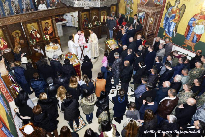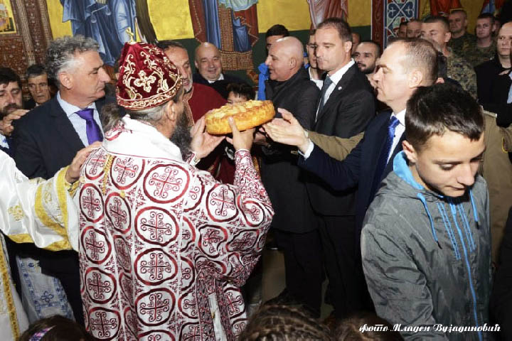 По раздјељењу Светих Дарова хришћанима овог града, уз спомен на све бранитеље и страдалнике за његову одбрану, освећени су и раздијељени и славски хљеб и жито, а радост Празника наставила је да се умножава и раздјељује и за трпезом у парохијском дому.
