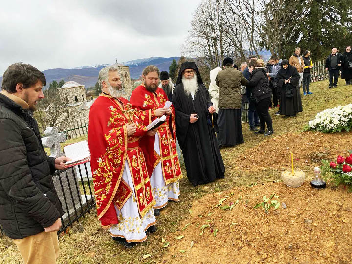 После Литургије, на монашком гробљу манастира Ђурђеви Ступови, одслужен је четрдесетодневни помен уз молитвено присуство братије и чланова породице монаха Серафима.
