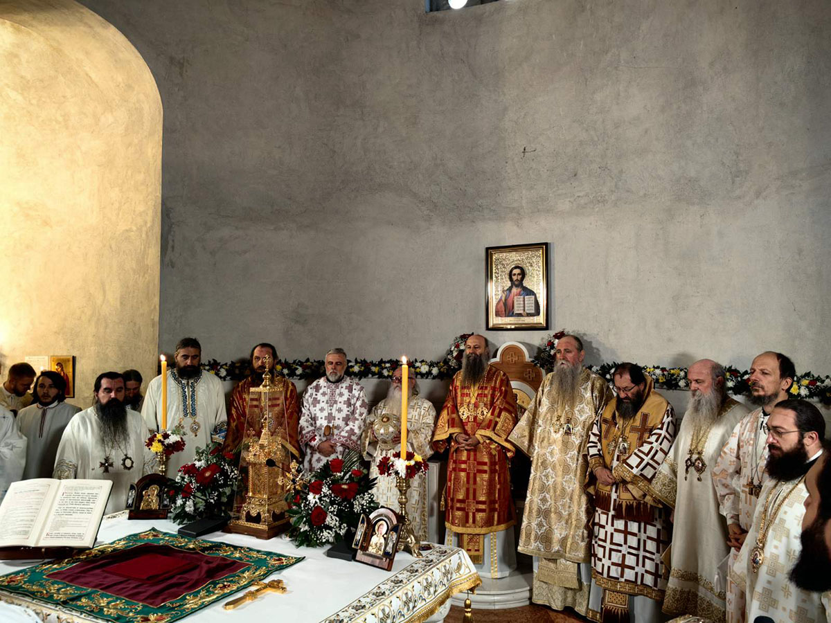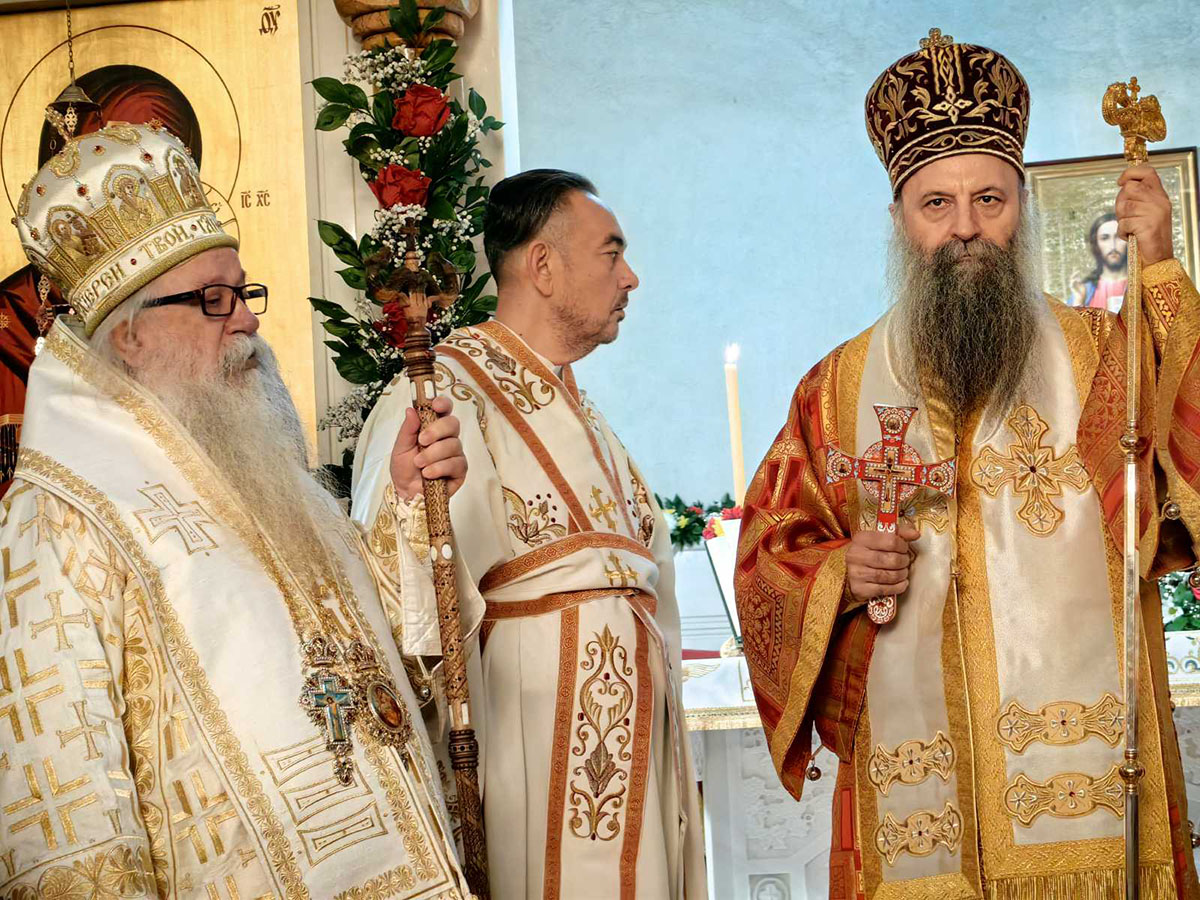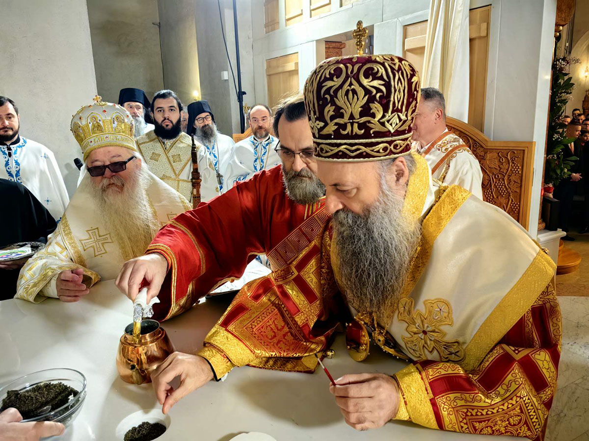 Торжествено литургијско сабрање започело је свечаним чином великог освећења Светосавског храма у Фочи којим је началствовао Његова Светост Патријарх г. Порфирије уз саслужење високопреосвећене и пресвећене господе архијереја: дабробосанског Хризостома, црногорско-приморског Јоаникија, жичког Јустина, диселдорфскоги немачког Григорија, славонског Јована, бихаћко-петровачког Сергија, захумско-херцеговачког и приморског Димитрија, будимљанско-никшићког Методија, шабачког Јеротеја и јегарског Нектарија.