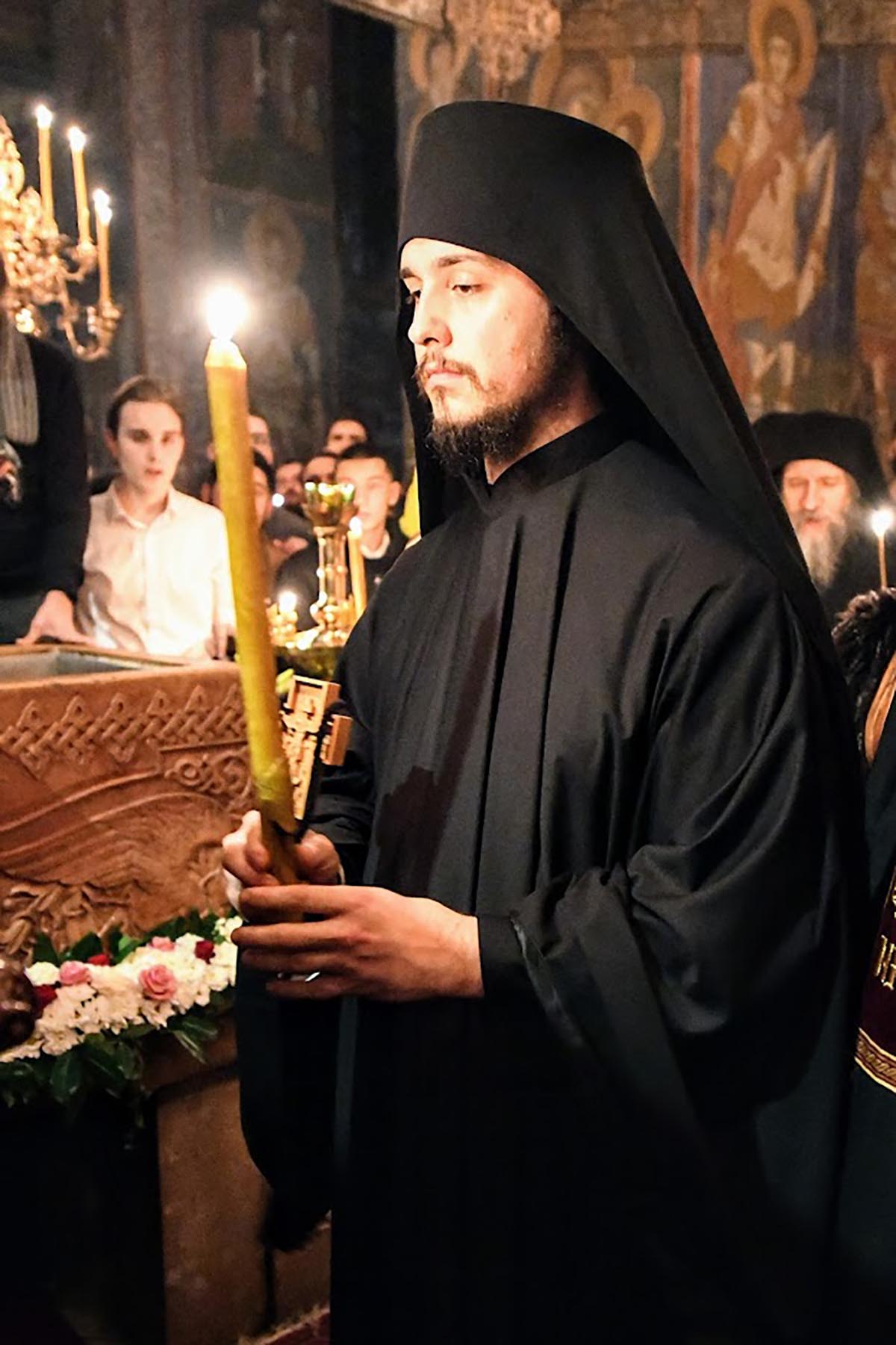 На крају бденија замонашен је искушеник ове свете обитељи Божо Кнежевић који је добио монашко име Амфилохије, по Светом Амфилохију Патмоском.