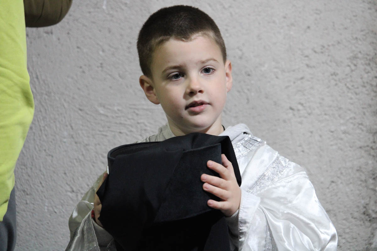 Током Литургије, коју је појањем пратио хор Преподобне мајке Ангелине, Владика је у чин чтеца рукопроизвео Марка Поповића из Никшића.