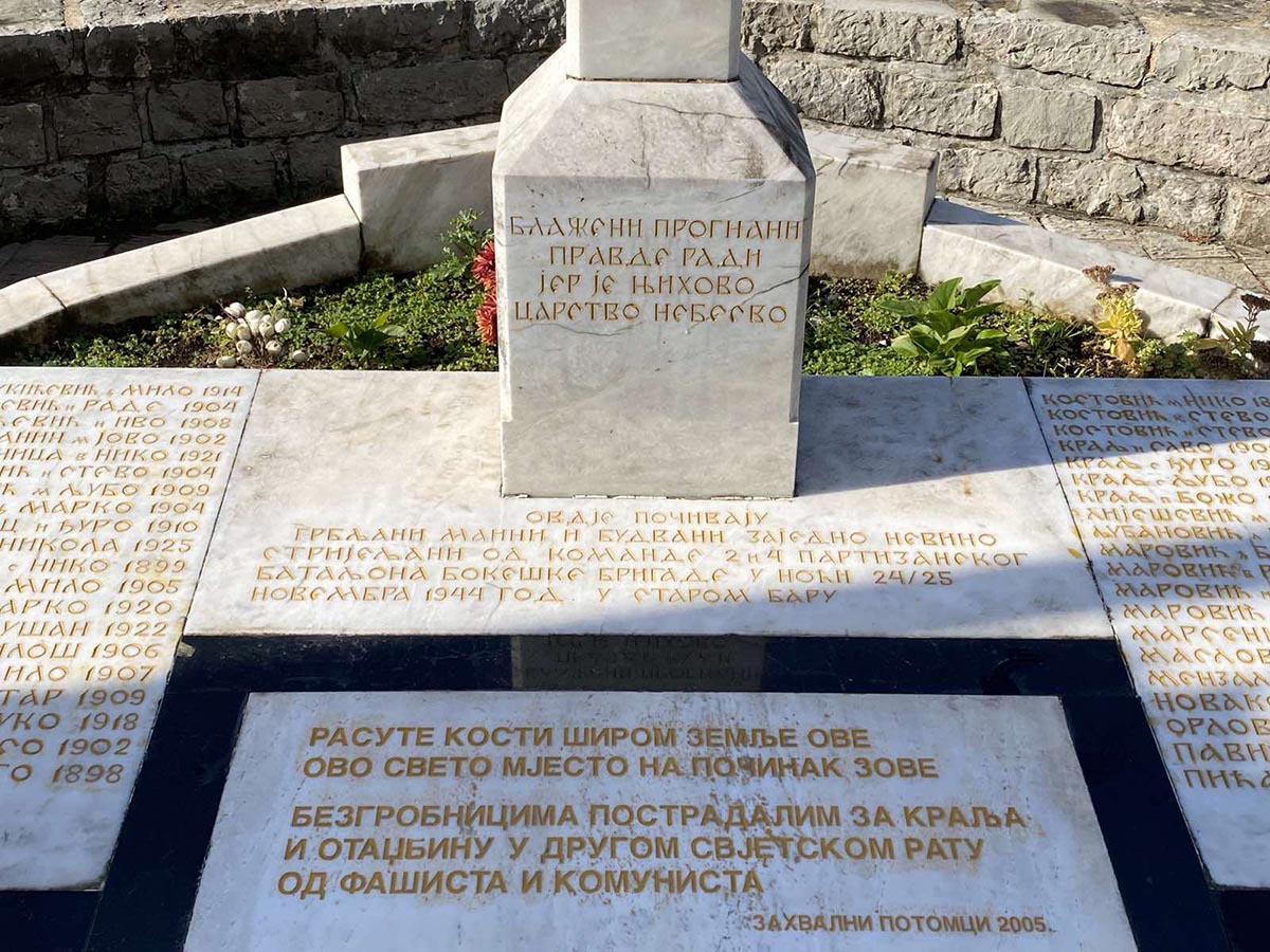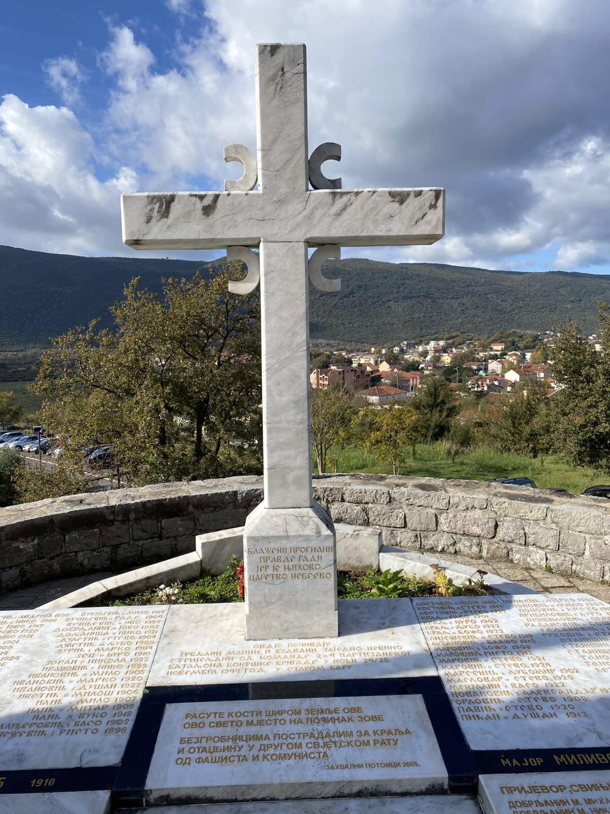 „Али, опет, Божја је изнад увијек и прије свега, па се након 80 година овдје слободно може рећи да си Србин Гбљанин, Кртољанин, Паштровић, Маин, Побор, Будванин, да си Бокељ, да си Црногорац, да си Србин из Херцеговине и других српских крајева и да си унук свог ђеда, праунук свог прађеда и да опет смијеш рећи под чијим знаком и под чијим крстомсу они пострадали. Ово мјесто овдје, када је подигнуто, на славу и част вама потомцима ових дивних предака, у то вријеме, још увијек, је била знак против којег се говорило, па и у наше вријеме. У оно вријеме када сте ви подигли ово крсно знамење са четири слова Србинова, вратили и сахранили достојанствено ваше претке, није било пуно таквих мјеста гдје се могло свједочити на тај начин истина, а да не трпиш последице и да за то не страдаш, али ви, браћо Бокељи, подигли сте ово крсно знамење прво у Црној Гори“, нагласио је отац Миајло.