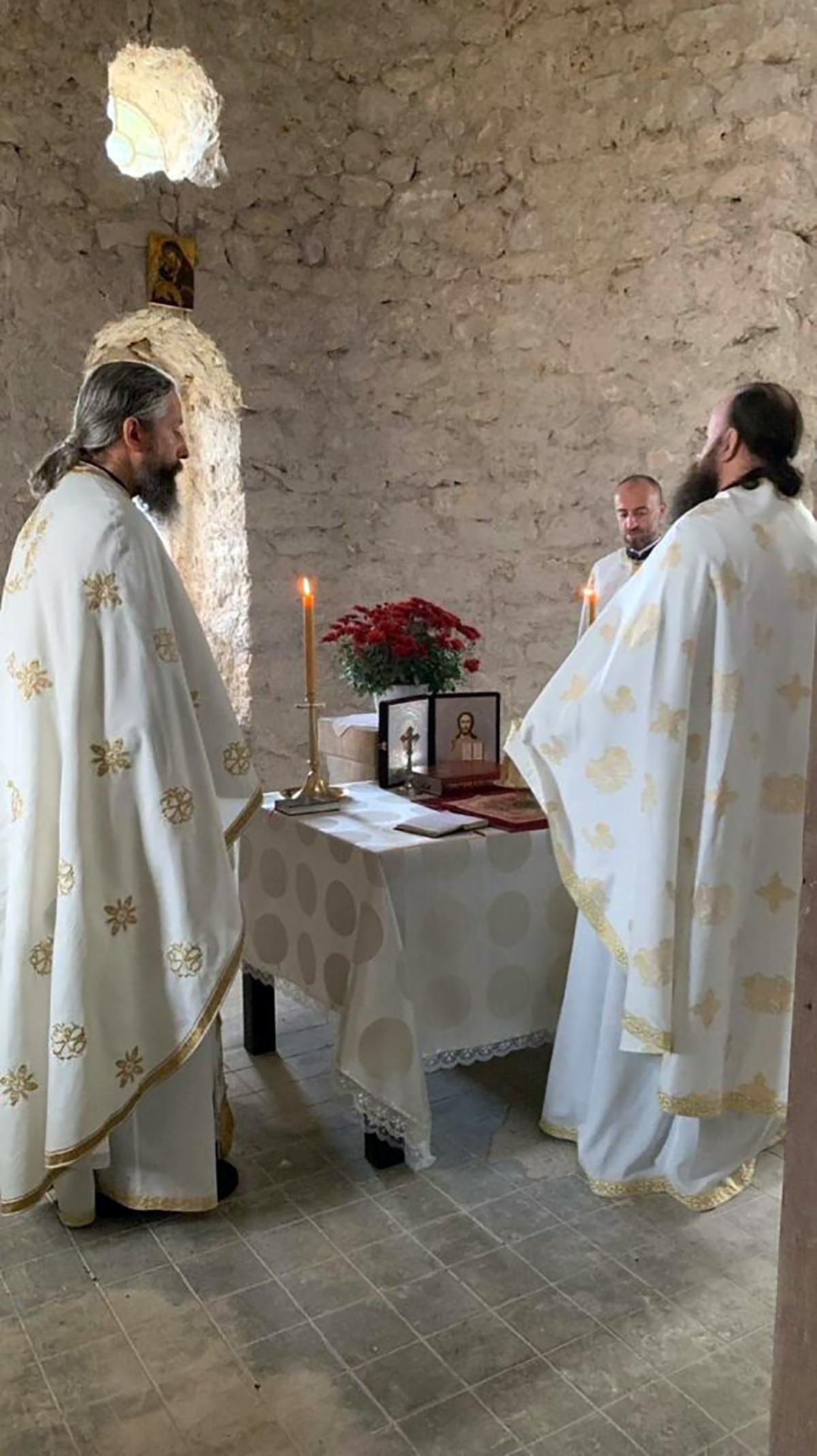 Литургију је служио преподобни јеромонах Јустин, игуман манастира Подластва, уз саслуживање о. Климента игумана манастира Прасквица код Петровца; оца Петра, сабрата манастира Високи Дечани и оца Драгана, пароха у Пећи, и уз молитвено присуство монахиња из Пећке Патријаршије и верног народа.