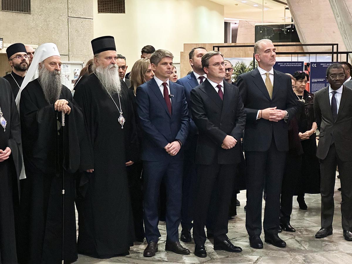 На крају свечаног отварања хор Богословије Светог Кирила и Методија из Призрена извео је полусатни концерт. Свечаном отварању изложбе присуствовали су: Високопреосвећени Митрополит рашко-призренски г. Теодосије; Преосвећени Епископ париски и западноевропски г. Јустин; протођакон Радомир Врућинић, ректор Богословије Светог Саве; протођакон Драган Радић, професор Православног богословског факултета у Београду.