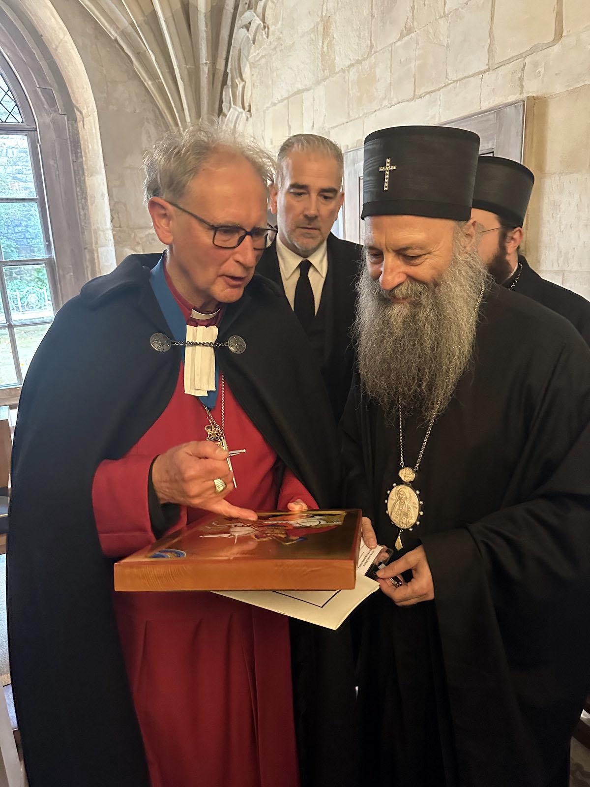 Поглавару Српске Православне Цркве добродошлицу је пожелео Преузвишени Епископ г. Кристофер Коксворт, старешина краљевске капеле и пренео лични поздрав Његовог Величанства британског краља Чарлса III. Патријарх је домаћину поклонио икону Светог великомученика Георгија, а епископ Кристофер је узвратио монографијом о Пресветој Богородици, коју је сам написао.