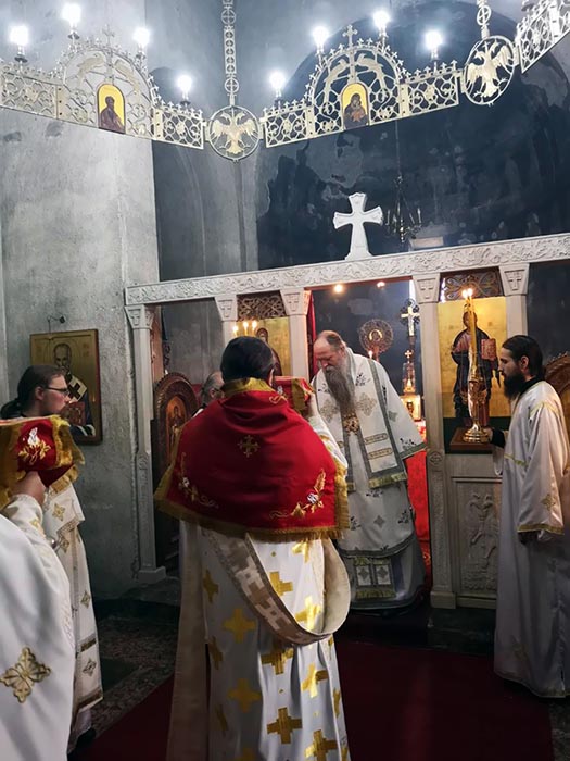 На празник и успомену Светих мученика Сергија и Вакха, Срђевдан, у суботу 20. октобра 2018, Његово Преосвештенство Епископ будимљанско-никшићки Г. Јоаникије служио је, са свештенством, Свету Архијерејску Литургију у манастиру Ђурђеви Ступови.