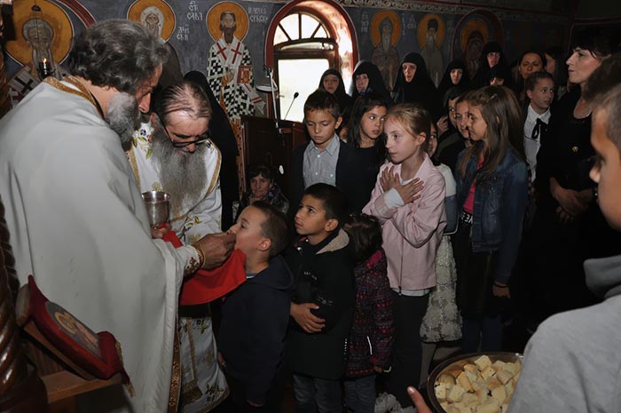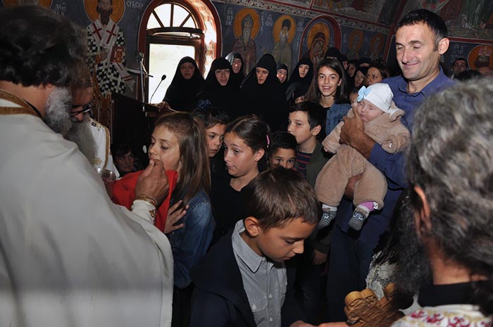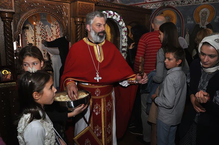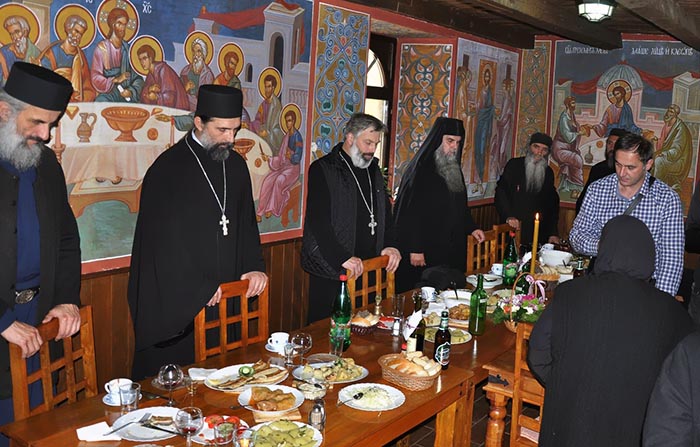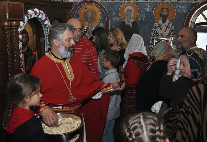 У великом присуству вјерног народа освештан је и преломљен славски колач и колачи овогодишњих свечара. Литургијско славље настављено је на трпези љубави у манастирској трпезарији.