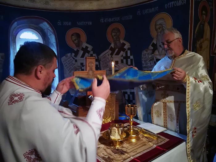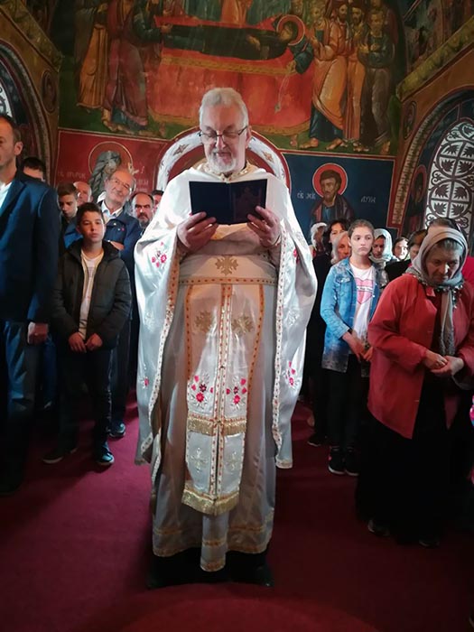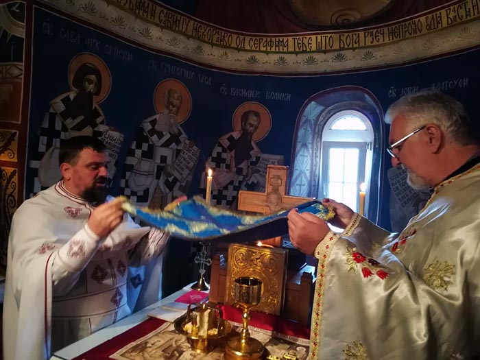 Литургију су служили: гостујући свештеник протојереј Александар Цинцаревић из Стокхолма и протојереј Велимир Јововић, старјешина страшевинског Саборног храма.