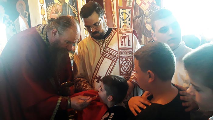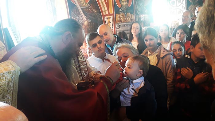 Литургију су појањем пратила дјеца из хора при цркви Светих Момишићких мученика из Подгорице, а празнично сабрање употпунио је радосни чин крштења маленог Николаја.