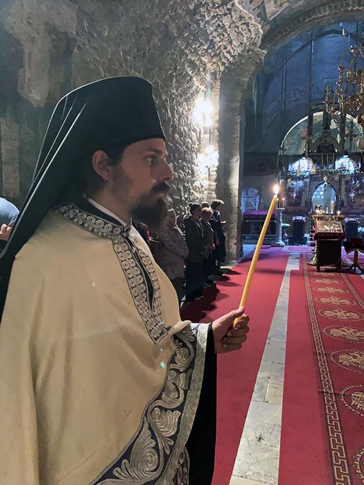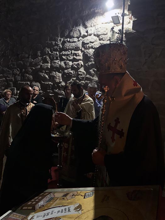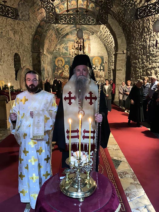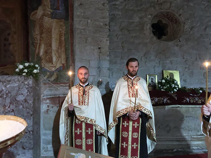 Његовом преосвештенству су саслуживали протојереј Ненад Нашпалић, парох гораждевачки, јереј Драган Радовановић, парох пећки, сабраћа манастира Ђурђеви Ступови протосинђел Евстатије (Драгојевић), јеромонах Пајсије (Ђерковић) и јерођакон Евтихије (Кецман). Бденије су јединственим благодатним појањем које се може чути само под сводовима Пећаршије улепшале сестре манастира које украшавају нашу Свету Цркву јуначким свједочењем истине Христове и подвижничким животом.