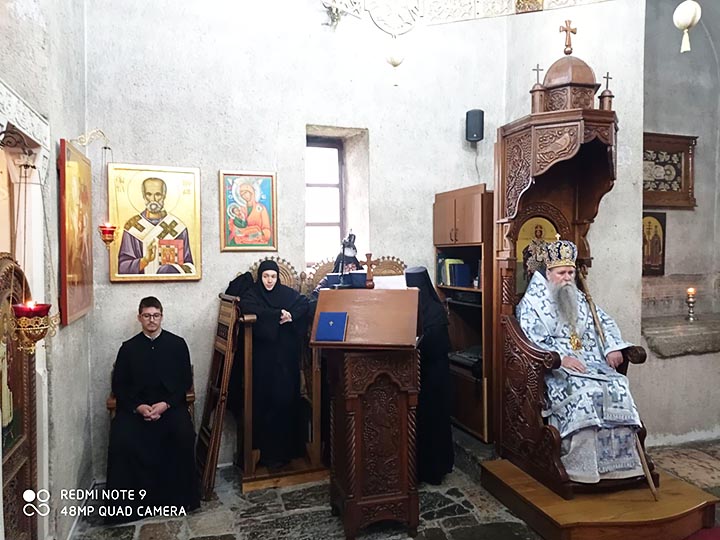 Његово Преосвештенство Епископ будимљанско-никшићки Г. Јоаникије служио је, на празник Покрова Пресвете Богородице, у сриједу 14. октобра 2020. са свештенством Свету Архијерејску Литургију у манастиру Ђурђеви Ступови.