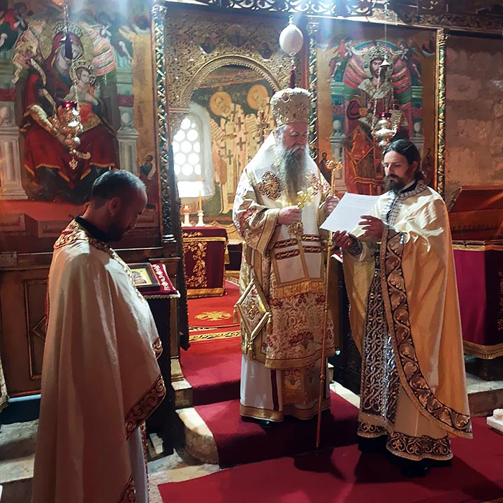 Његово Преосвештенство Епископ будимљанско-никшићки Г. Јоаникије служио је на празник Светог Патријарха Пећког Пајсија, у петак 16. октобра 2020. Свету Архијерејску Литургију у Пећкој Патријаршији, у чијој цркви Светих Апостола се чува часна глава Светог Пајсија Патријарха Пећког.