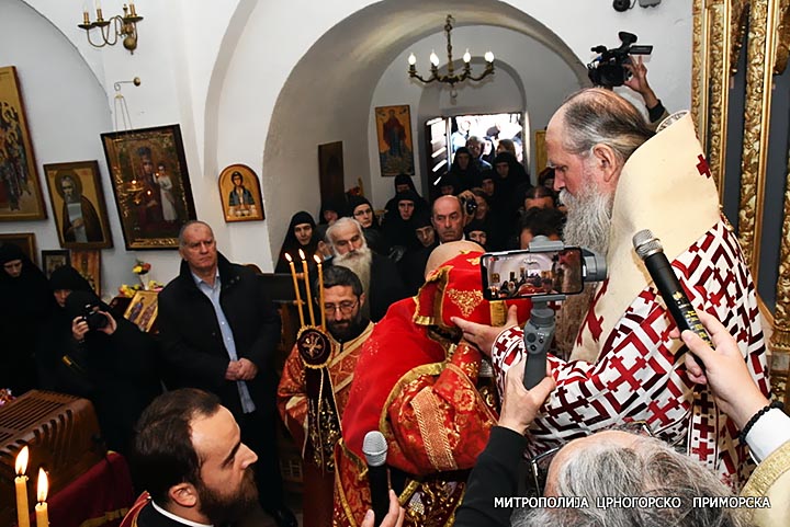 Чинодејствовали су господа епископи: будимљанско-никшићки и администратор Митрополије црногорско-приморске Јоаникије, рашко-призренски и косовско-метохијски Теодосије, захумско-херцеговачки и приморски Димитрије, викарни диоклијски Методије и умировљени Владика Атанасије Јевтић, уз саслужење многобројног свештенства и свештеномонаштва уз молитвено учешће вјерног народа, међу којим је био и манадатар за састав нове црногорске Владе проф. др Здравко Кривокапић.