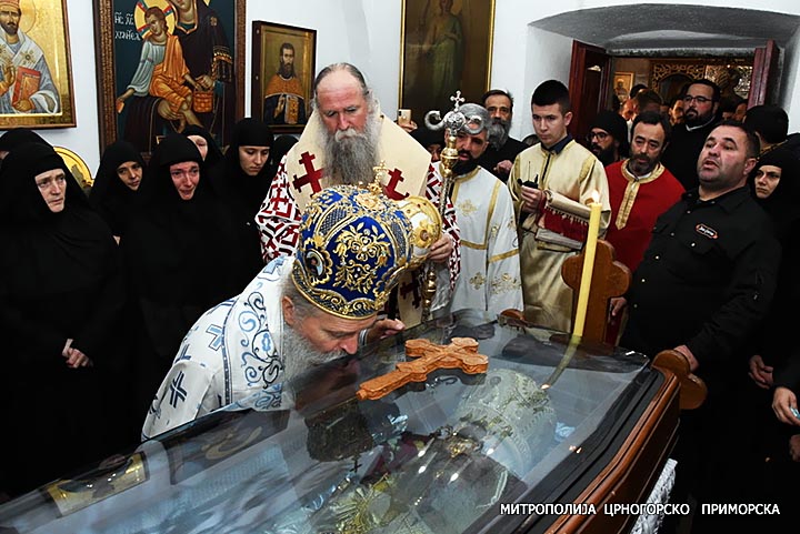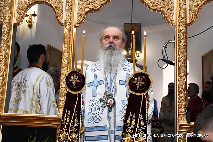 И благодарност Богу што данас на данашњи празник и славу овог манастира и Цетињске богословије нико нас други није сабрао него наш добри Митрополит. Његовим молитвама да се данас више него икад молимо Богу и за њега и за род наш овдје у Црној Гори и свим српским земљама, за све страдалне широм свијета који страдају на Голготи Христа ради. Да се молимо Господу да молитвама свих светих из рода нашега, а сада њима прибројаног и нашег Митрополита Амфилохија, да нас заштити, да нас укријепи да нас научи како да ми живимо, како да ми прослављамо Бога животом својим, ријечју и дјелом.