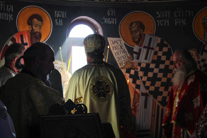 „Још од раних хришћанских времена се збивало, и данас се збило, да се хришћани скупљају и да служе свету Евхаристију на гробовима мученика, мученичких костију, који су цијели свој животу посветили Христу Богу и вјери хришћанској, сљедујући за Њим и испуњавајући све до свог последњег издиханија и до последње капи крви. Тако смо се и ми данас окупили овдје. Сваки храм Божји, свака служба Божја и света Литургија служи се, увијек, на моштима мученика. Тако у антиминсу, платну које стоји на Часној трпези у олтару, увијек, су ушивени дјелићи моштију Светих мученика да би понављали и подражавали оно што су рани хришћани радили, а то је служење Литургије на гробовима светих и на моштима светих мученика“, казао је Епископ Методије.