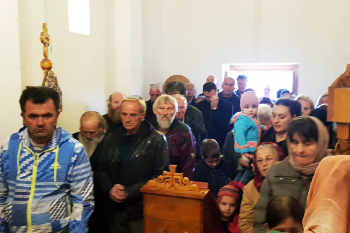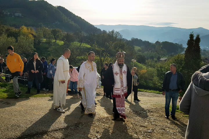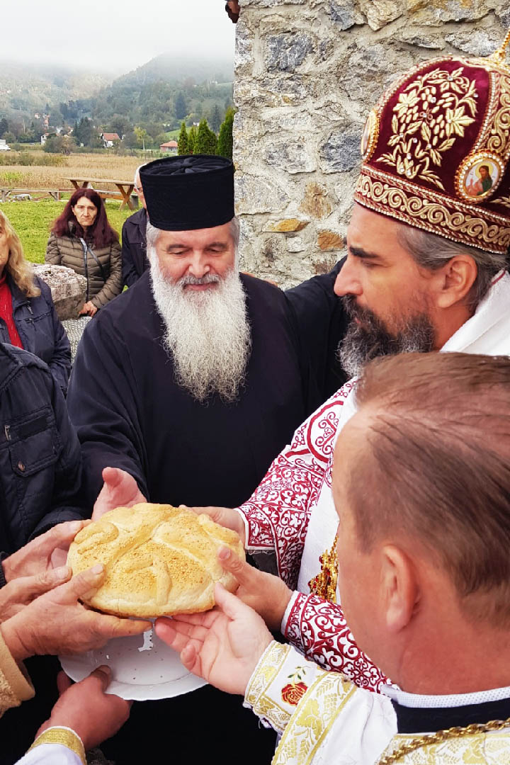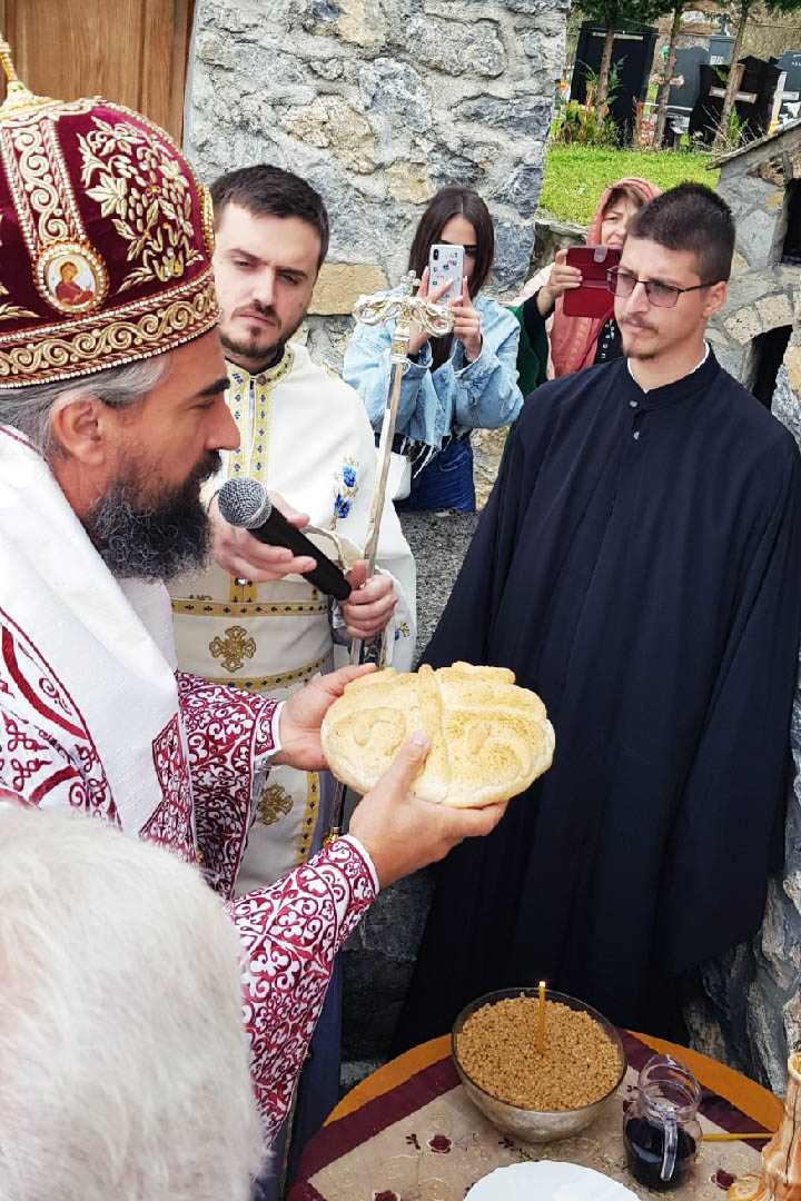 Након свете службе Божје, преломљен је славски колач и освештано жито.