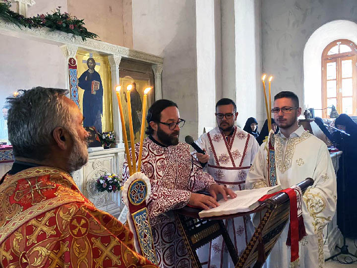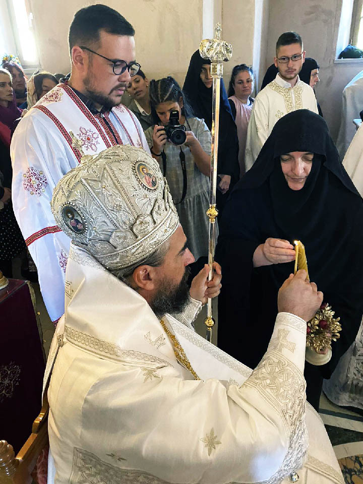 На почетку Литургије, Преосвећени Владика је у искушеницу обукао слушкињу Божју Ивану Вилов.