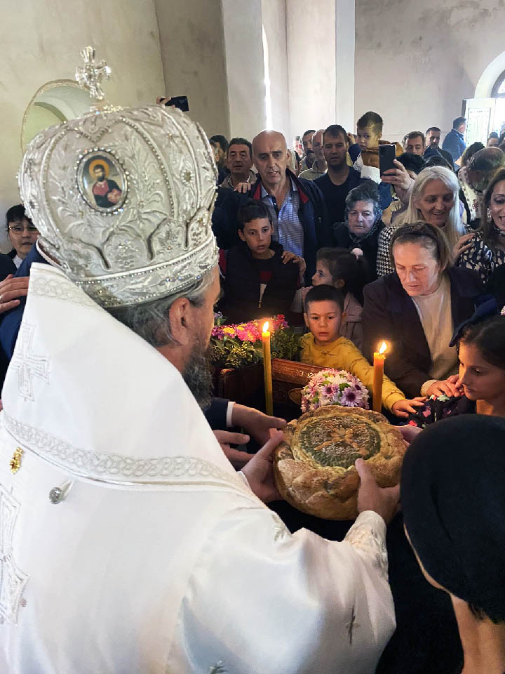 На крају Литургије одслужен је помен блаженопочившем Митрополиту Амфилохију, а освештан је и преломљен славски колач, поводом манастирске славе.