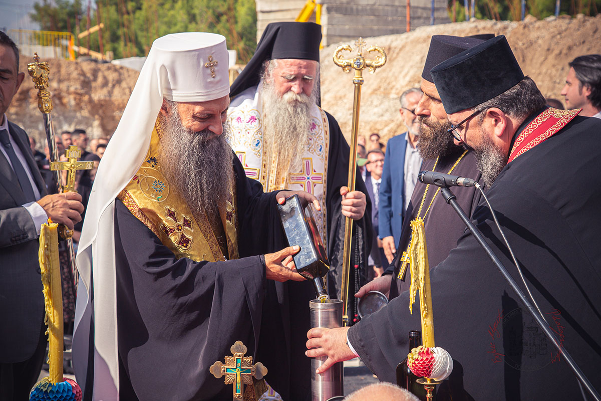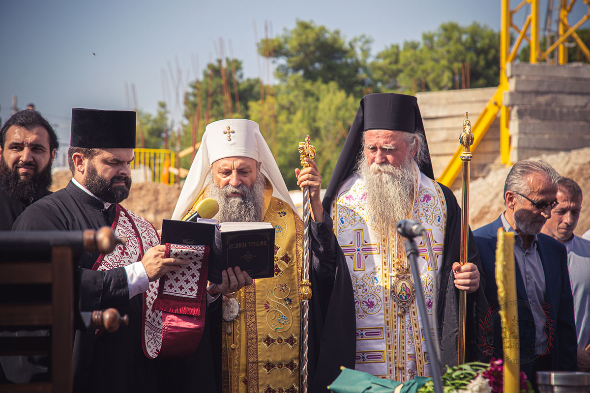 Његова светост Патријарх српски г. Порфирије и Високопреосвећени Митрополит црногорско-приморски г. Јоаникије данас, 15. октобра 2023. године, освештали су и положили камен темељац цркве Светог Саве и Православне гимназије „Свети Сава“, чија изградња је почела у подгоричком насељу Стари аеродром на Марковдан, 8. маја ове године.