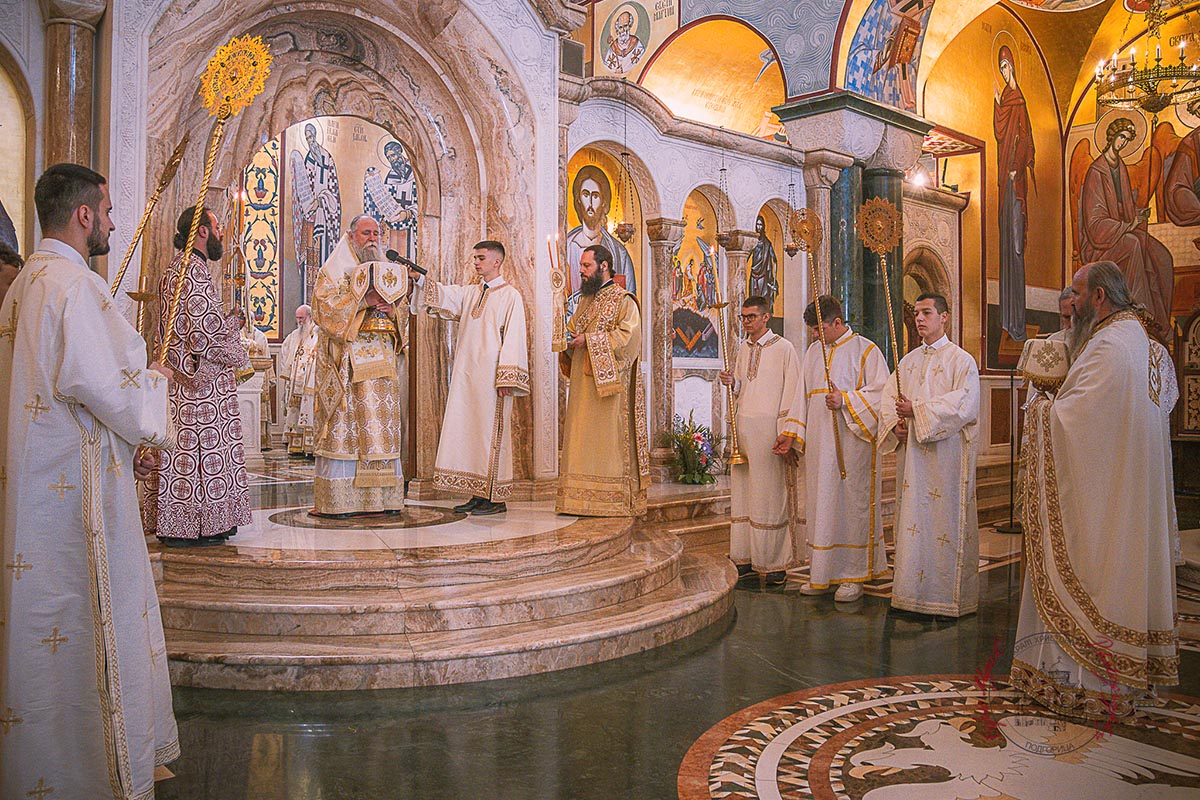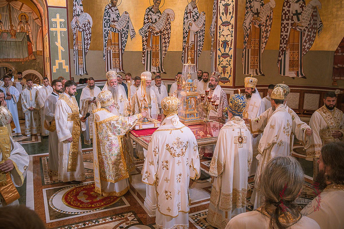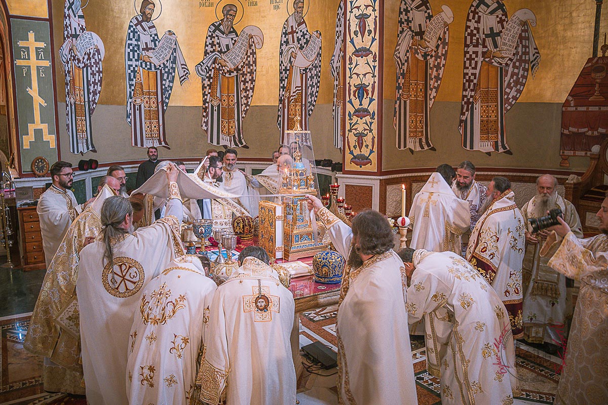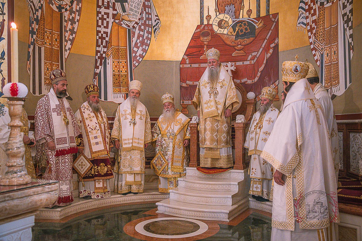 Светом службом Божијом началствовао је Његово високопреосвештенство Архиепископ сарајевски и Митрополит дабробосански г. Хризостом уз саслужење високопреосвећене господе митрополита: црногорско-приморског Јоаникија, брегалничког Илариона (Охридска архиепископија – Македонска православна црква), милешевског Атанасија, рашко-призренског Теодосија, захумско-херцеговачког Димитрија, као и преосвећене господе епископа делчевско-каменичког Марка (Охридска архиепископија – Македонска православна црква), пакрачко-славонског Јована, будимљанско-никшићког Методија, диоклијског Пајсија, многобројног свештенства и свештеномонаштва у молитвеном присуству благочестивог народа, представника власти, политичког и јавног живота.