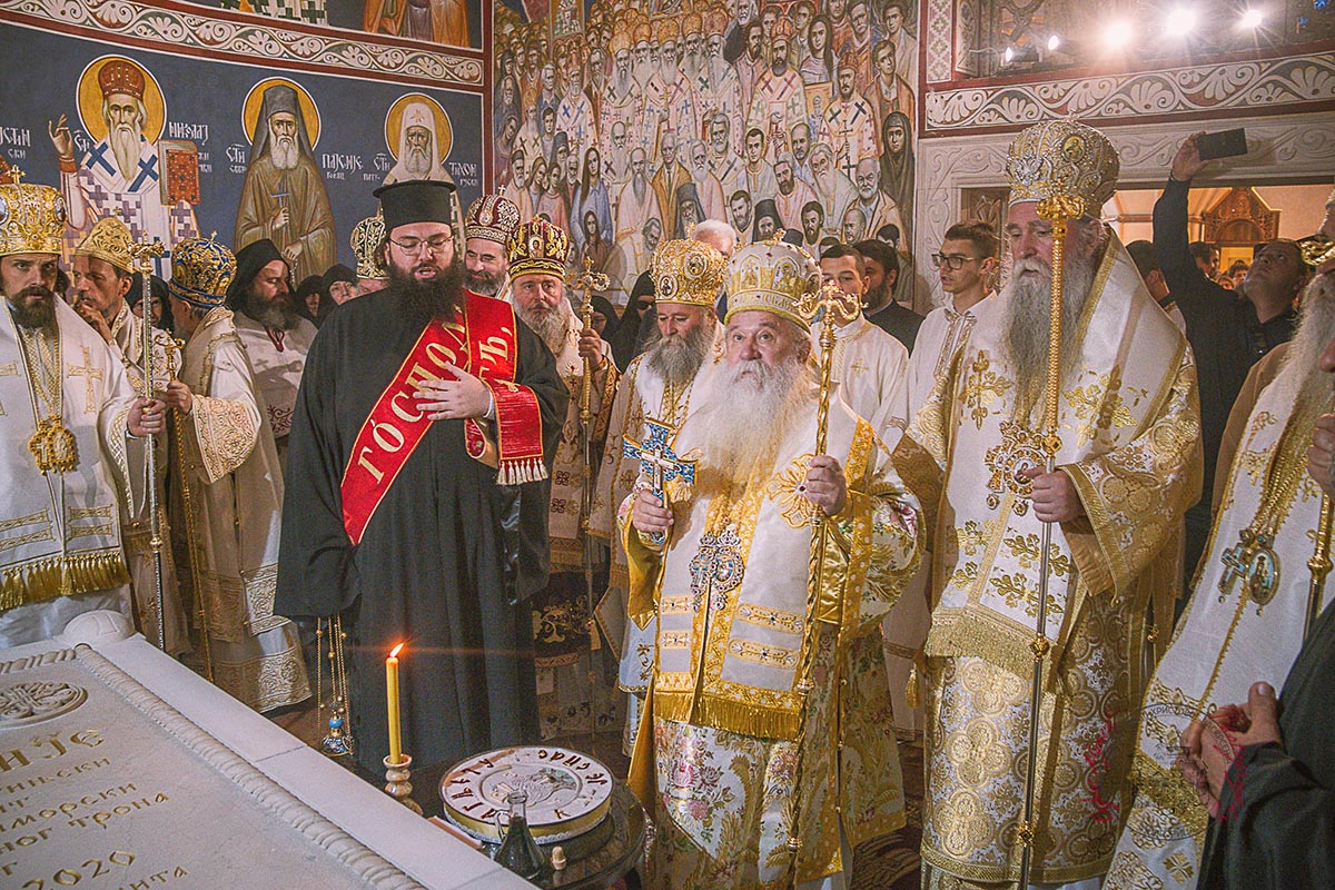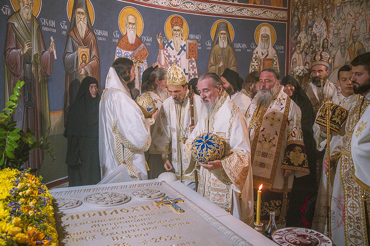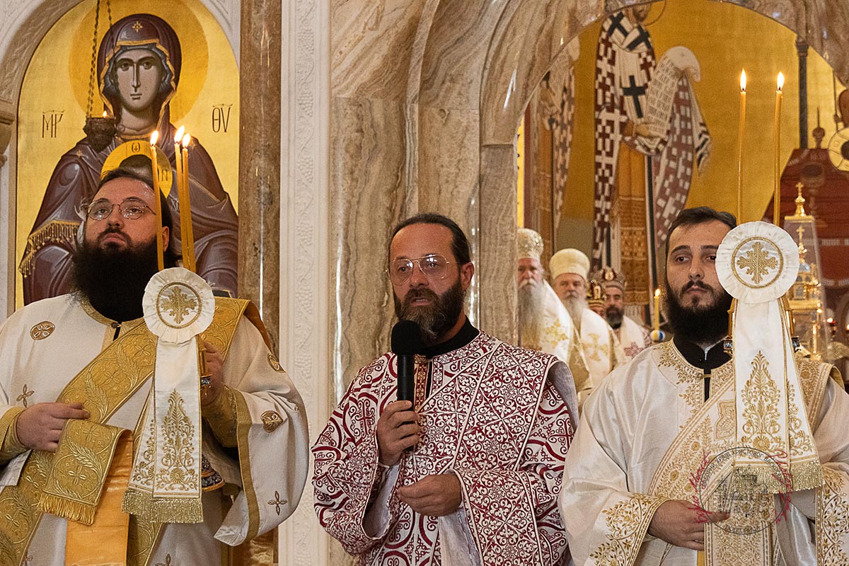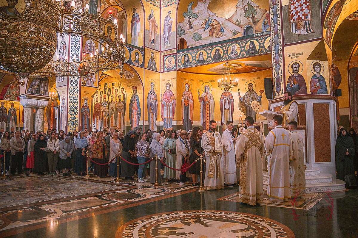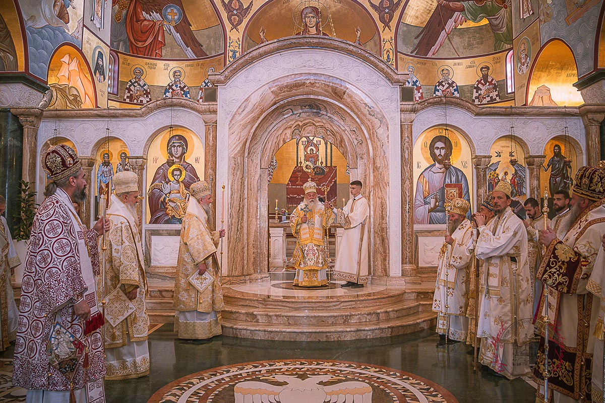 Светом службом Божијом началствовао је Његово високопреосвештенство Архиепископ сарајевски и Митрополит дабробосански г. Хризостом уз саслужење високопреосвећене господе митрополита: црногорско-приморског Јоаникија, брегалничког Илариона (Охридска архиепископија – Македонска православна црква), милешевског Атанасија, рашко-призренског Теодосија, захумско-херцеговачког Димитрија, као и преосвећене господе епископа делчевско-каменичког Марка (Охридска архиепископија – Македонска православна црква), пакрачко-славонског Јована, будимљанско-никшићког Методија, диоклијског Пајсија, многобројног свештенства и свештеномонаштва у молитвеном присуству благочестивог народа, представника власти, политичког и јавног живота.