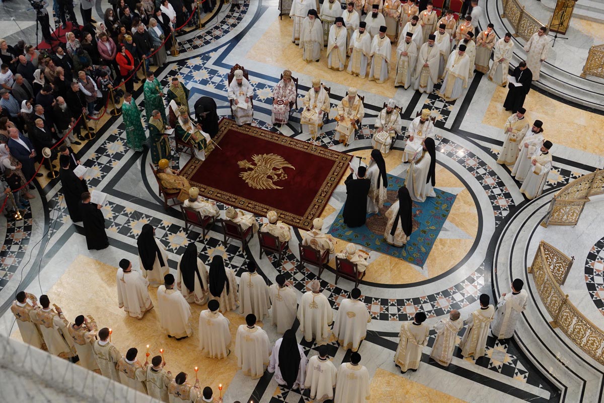 – Браћо архијереји, овако како смо данас сабрани у овом храму, сви ми и из Отаџбине и из расејања, тако ћемо и остати сабрани, евхаристијски и канонски у нашој Једној, Светој, Саборној и Апостолској Цркви без обзира где смо настањени, јер такву Цркву исповедамо на свакој Литургији и у свакој личној молитви. Браћо и сестре, не заборавимо никад да је сабрање кључни и темељни чинилац наше православне вере. Од изрека које слушамо од детињства, попут заједно смо јачи, до пастирских светоотачких поука које нам говоре да вук прво једну овцу одваја од стада, па је онда уништава, до горког искуства данашњице кад многи вукови на разне начине желе да разбију нас, стадо Христово, и развуку нас по духовним пустињама да би нас уништили, још очигледније видимо важност наше саборности и сабирања у нашу Свету Цркву коју нам је Свети Сава завештао за простор сабирања у Духу и Истини. Ми, који смо данас овде окупљени, понећемо са собом сведочанство лепоте сабрања у Духу и Истини да нас надахњује и да га поделимо са браћом и сестрама по свим нашим храмовима били они велелепни или скромни.