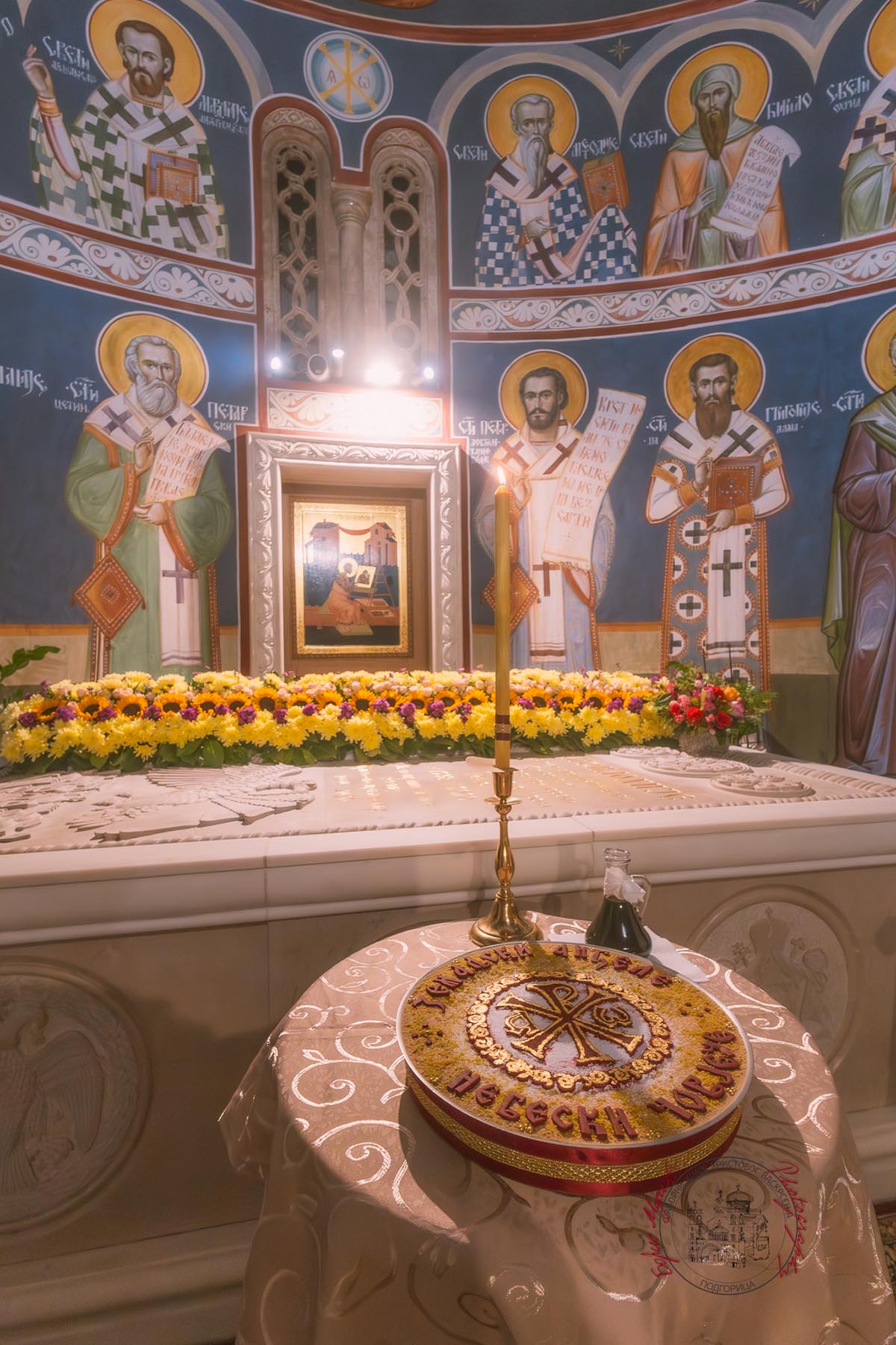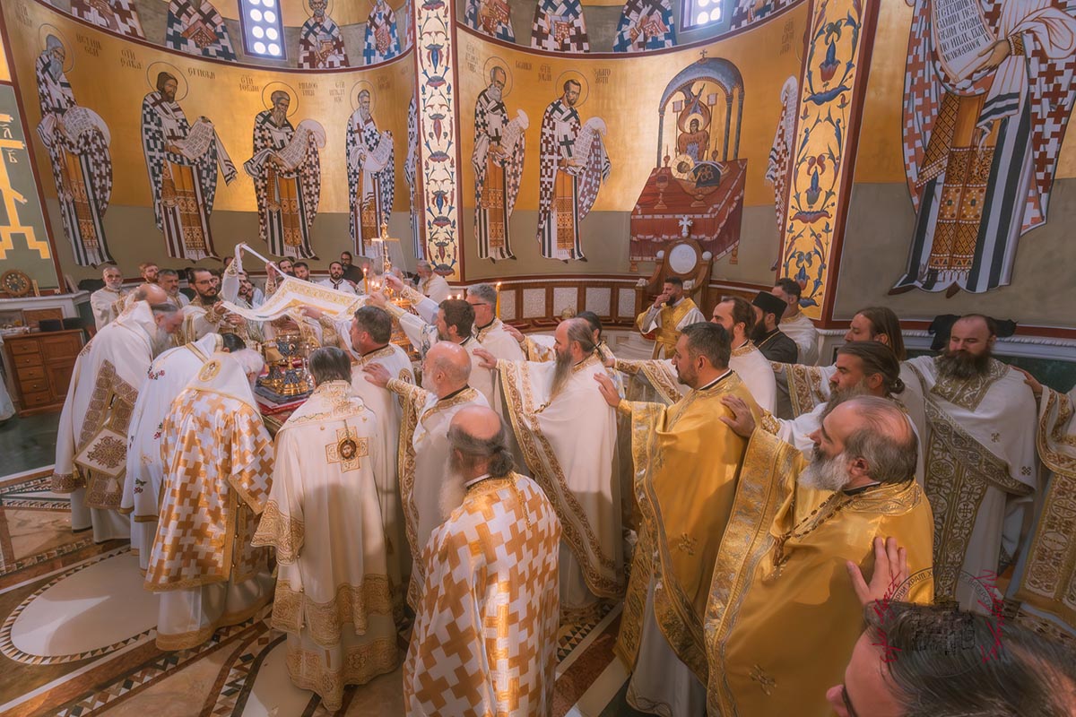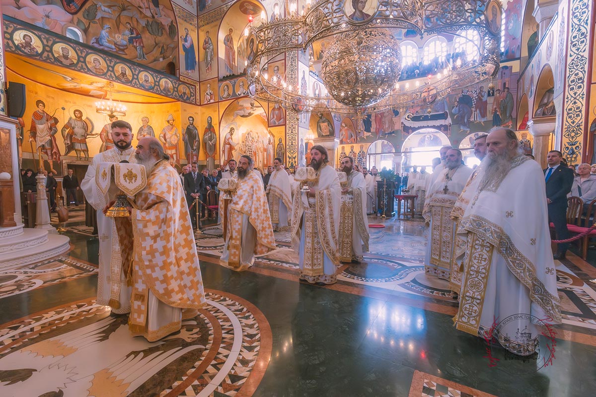 Зато посебно благодаримо браћи Јелинима који су данас овдје дошли из Јерусалимске Патријаршије, наш драги брат у Христу Митрополит Макарије, ученик нашег блаженопочившег Митрополита и по први пут наш брат у Христу Владика Из Волоса Игњатије, који су са великом љубављу дошли, који се сјећају врлина и заслуга нашег Блаженопоћившега Митрополита, о чему смо имали пририку да чујемо и синоћ и данас много лијепих ријечи, много лијепих свједочанстава. Наш велики пјесник Васко Попа када је писао о Светом Сави, на једном мјесту каже, ,,Путује, а пут се за њим рађа.“ Куда је год ишао наш Блаженопочивши Митрополит, а обишао је цио свијет, свуда су се откривале заслуге његове и даље се откривају, и ти његови трагови свијетле, његова дјела свијетле и то је богатство за све нас Православне хришћане. Нека га Господ награди вијенцем славе, непролазне и вјечне небеске, и нека Господ услиши његове молитве које он пред престолом Божијим, приноси за све нас, а све вас драга браћо и сестре, који долазите у овај свети Храм и молите се за душу блаженопочившега Митрополита, нека Бог изобилно награди, и његов благослов нека почива и на вама, и на вашим домовима, и на вашим потомству. Амин Боже дај! На многа и блага љета!“