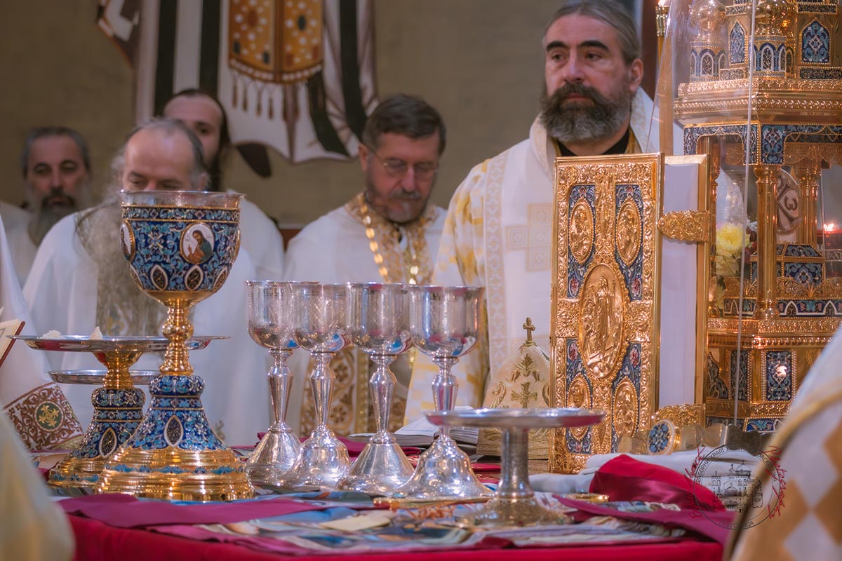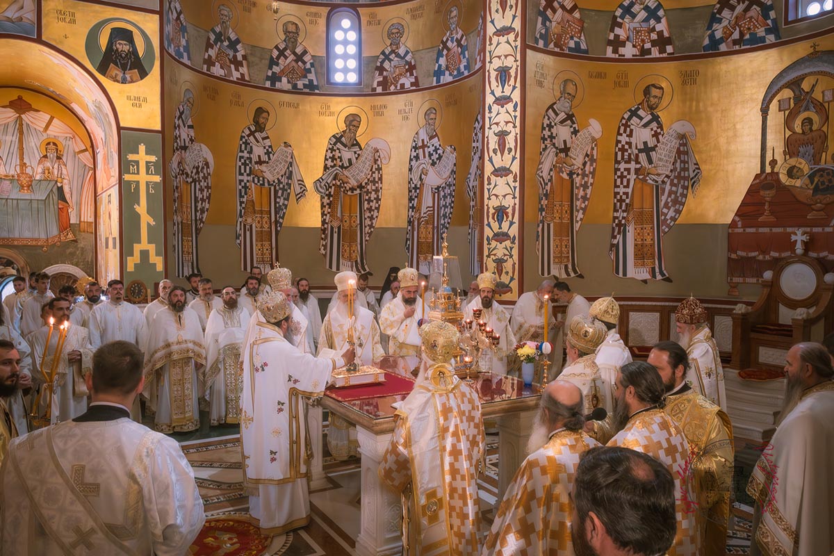 Браћо моја, данас, као у свакој Светој Литургији, видјели смо Господа нашега Исуса Христа, како се поново рађа на Светој Проскомидији, као некада у Витлејему, како улази у свијет у малом входу са Јеванђељем, како нас поучава својом Божанском ријечју и како долази на Свети Престо, као на нову Голготу, да се принесе и Васкрсне, дарујући нам Своје Тијело и Његову крв. Да бисмо постали једно са Њим и једно међу собом – учесници у Васкрсењу и заједници Царства Небеског. Митрополит Амфилохије је ову тајну живио читавог свог живота.