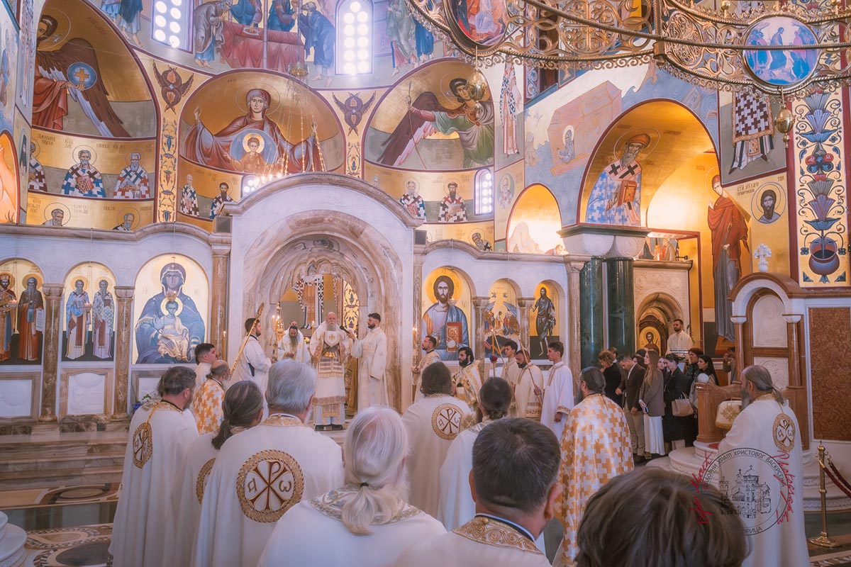 Након Заамвоне молитве Његово високопреосвештенство Митрополит димитријадски и алмирски г. Игњатије је са саслужитељима архијерејима одслужио помен блаженопочившем Митрополиту Амфилохију у његовом мјесту почивања у параклису Светог Амфилохија Иконијског у крипти Саборног храма.