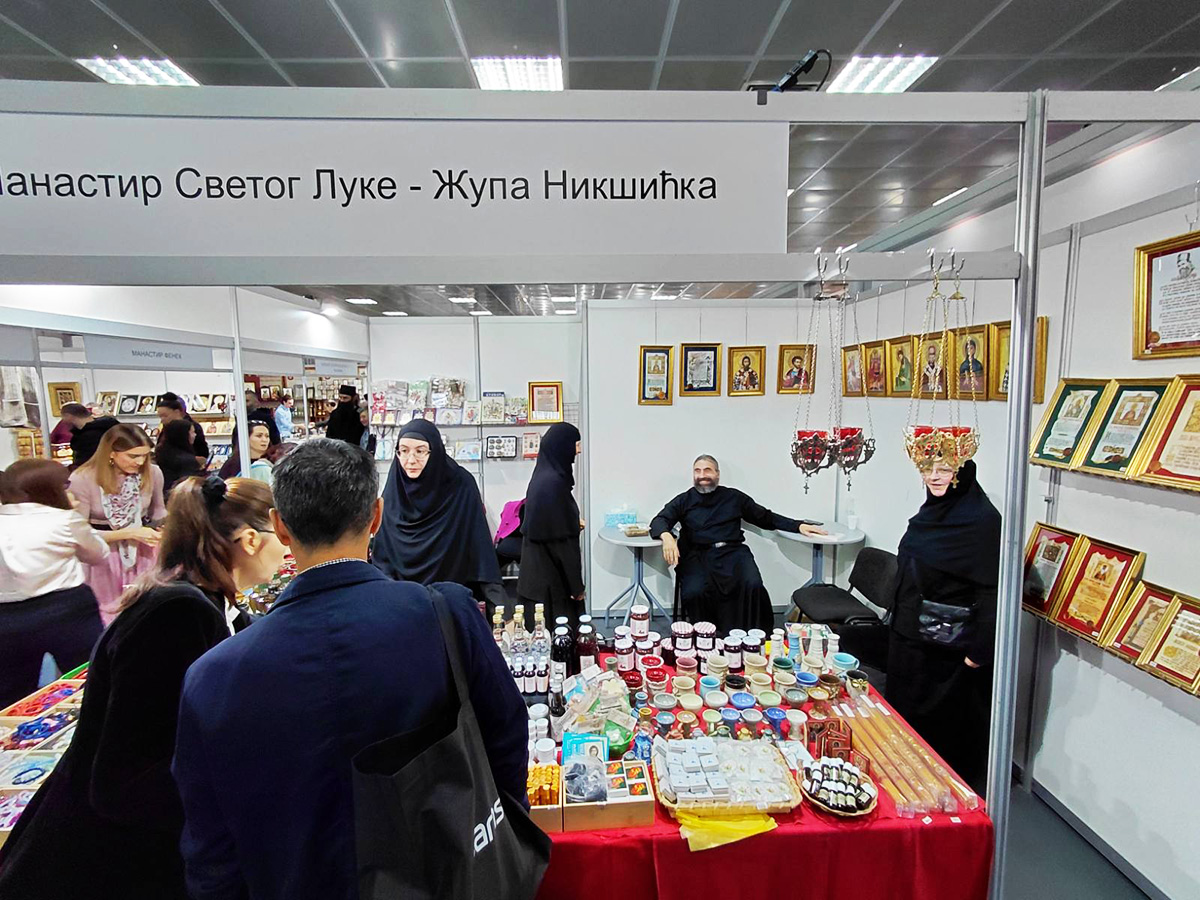 Митрополит је посјетио штанд Епархије будимљанско-никшићке, на ком своја издања излаже Издавачка кућа Епархије „Свевиђе“, након чега је посјетио и излагачки простор сестринства манастира Светог Луке из Жупе Никшићке, које са својим рукодјељем, и ове године, учествују на Сајму књига.