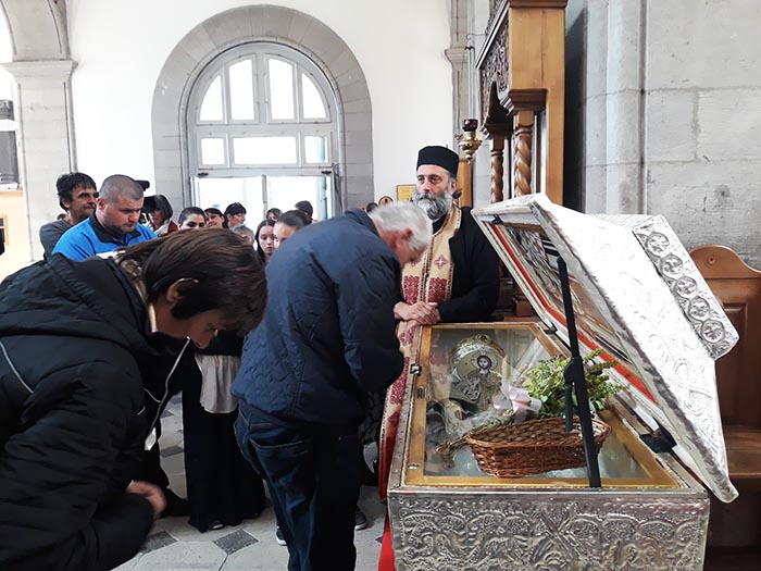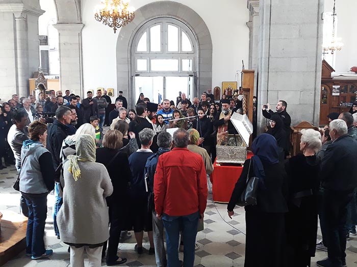Након дводневног поклоњења великог броја вјерног народа Мошти су испраћене из Никшића звонима са Саборне цркве и молитвеним пјесмама.