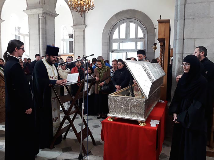 Пред испраћај Светитељевих чесних Моштију из никшићке Саборне цркве, служен је Акатист Светом Арсенију. Акатист је служило свештенство Саборног храма.