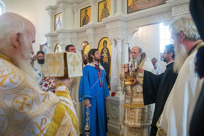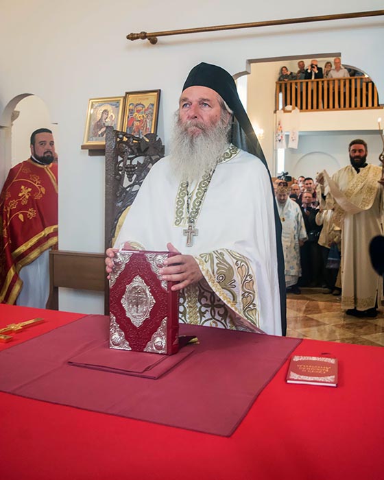 По прочитаним одељцима из Светог Писма, након поздравног слава домаћина, Преосвештеног владике г. Јована, пастирском беседом о Светим мученицима Цркве Христове, окупљени народ поздравио је Високопреосвештени Архиепископ Марко.