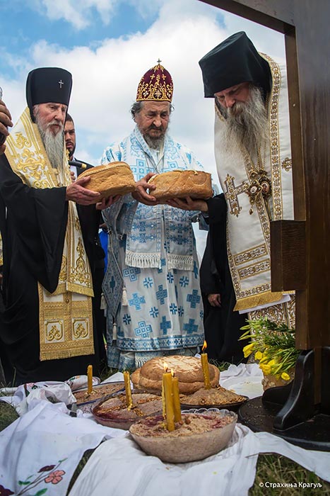 Након причешћа Светим Даровима у којима су удео узели скоро сви окупљени, по свршетку свете Литургије, као што је и протеклих година био обичај, Архијереји су с верним народом и свештенством, на хумци недалеко од споменика „Камени цвијет“ у славу Божију а у част и спомен Светих Новомученика освештали славски колач и жито.