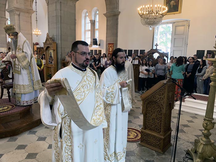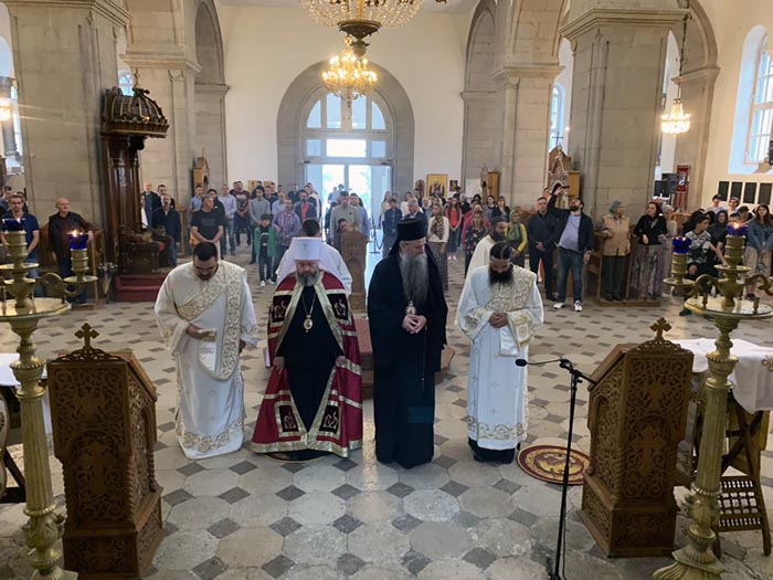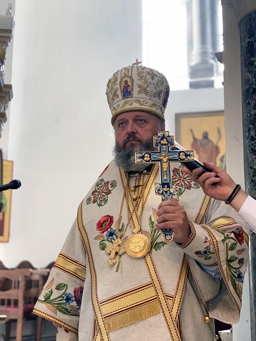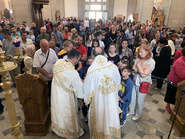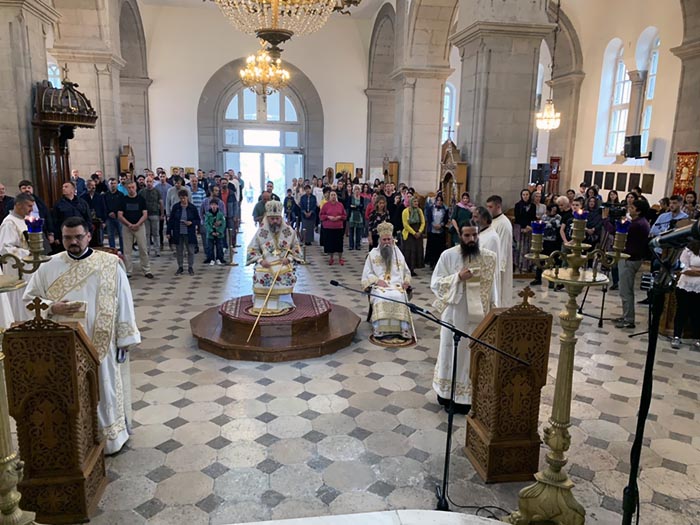 Након што су бројни вјерници приступили Светим Тајнама Тијела и Крви Христове, Високопреосвећеног Митрополита Аристарха и његове сараднике, ријечима срдачне добродошлице поздравио је Епископ Јоаникије. Он је казао да је радост Литургије на данашњи васкршњи недељни дан увеличана доласком драгих гостију, „браће по вјери, по Духу Светом“.