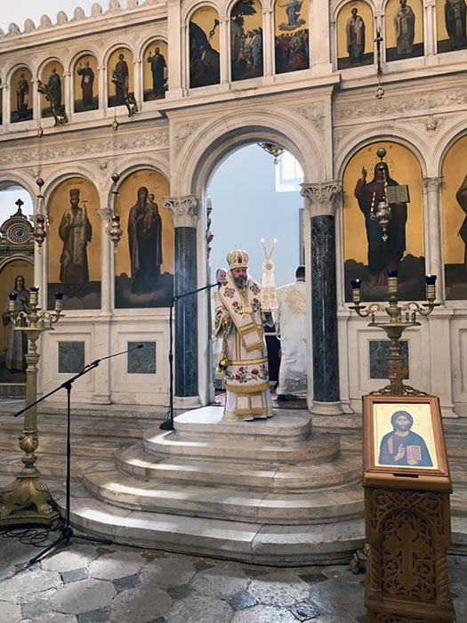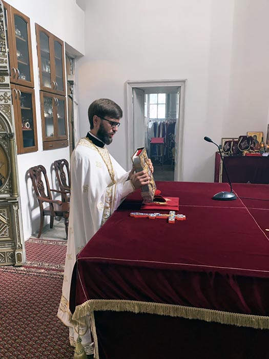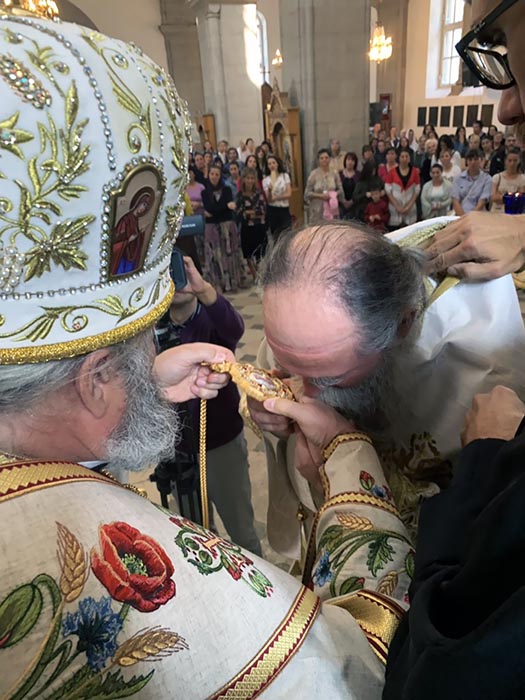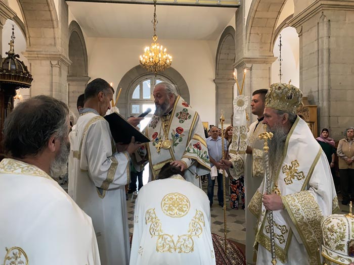 Током Литургије, по благослову надлежног Епископа, Владике Јоаникија Митрополит Аристарх је јереја др Николу Маројевића произвео у чин протојереја.