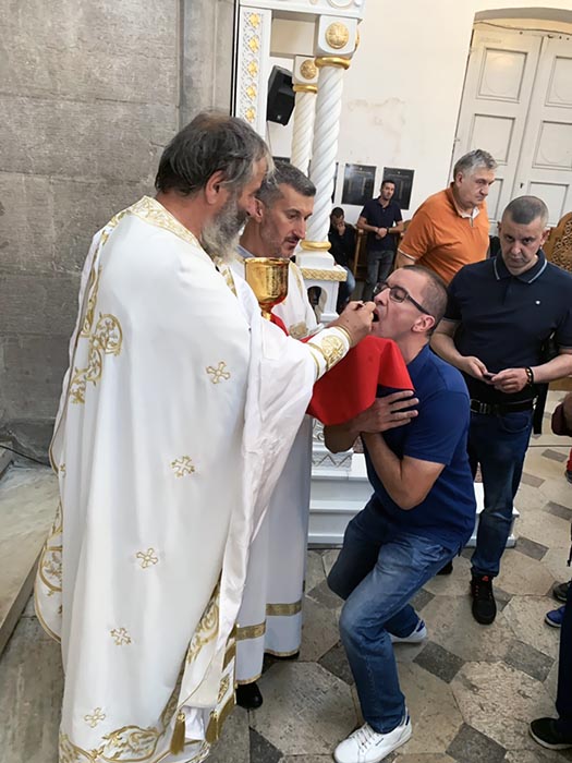 Евхаристијско сабрање, које је појањем пратила пјевница никшићког Саборног храма и хор Преподобне мати Ангелине, употпунио је радосни чин крштења.