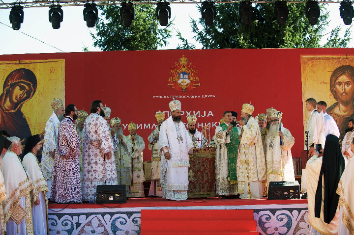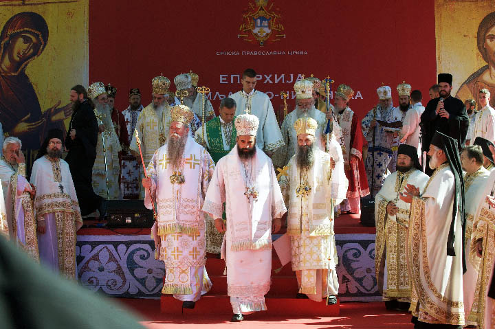 Предстојатељу Српске православне цркве саслуживали су: Епископ будимљанско-никшићки г. Методије, Архиепископ охридски и Митрополит скопски г. Јован, Митрополит дабробосански г. Хризостом, Митрополит црногорско-приморски г. Јоаникије, као и господа епископи: жички Јустин, шумадијски Јован, милешевски Атанасије, диселдорфски и њемачки Григорије, брегалнички Марко, рашко-призренски Теодосије, западноамерички Максим, крушевачки Давид, славонски Јован, буеносајрески и јужноцентралноамерички Кирило, захумско-херцеговачки Димитрије, ваљевски Исихије, ремезијански Стефан, хвостански Јустин, многобројно свештенство и свештеномонаштво наше Цркве, уз молитвено учешће великог броја благочестивог вјерног народа сабраног из свих крајева Црне Горе.