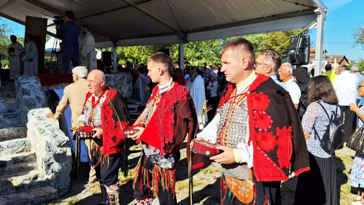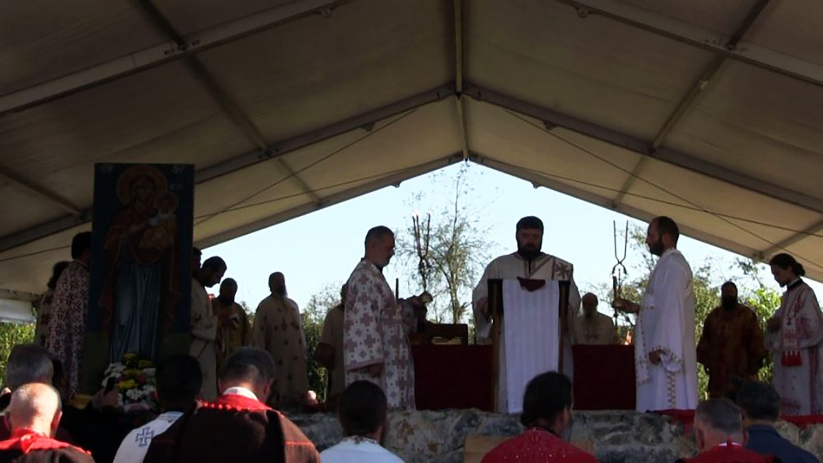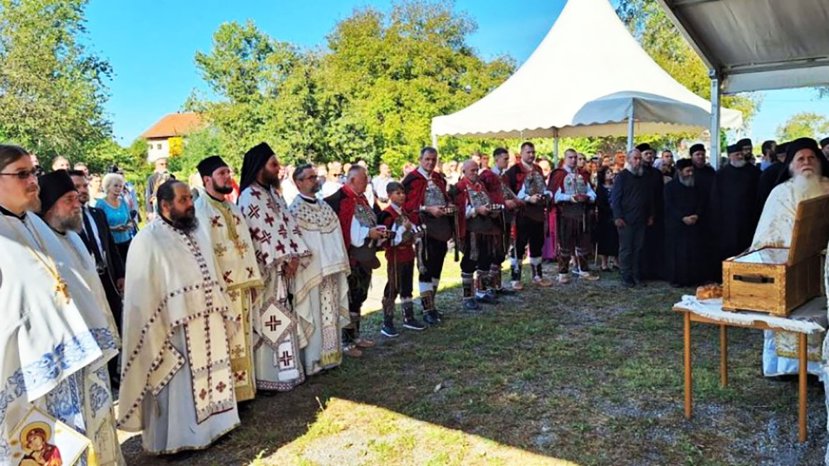После свете Литургије, на хумки код споменика Камени цвет у Спомен-подручју Јасеновац освештани су славски дарови, а затим је освештана и Српска школа у којој је смештен истраживачки центар и библиотека везана за Други светски рат.