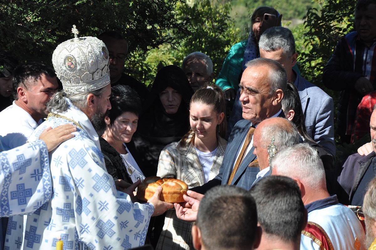 Након причешћа вјерника, празнична литија вјерника опходила је храмовно здање, а Преосвећени Епископ Методије је освештао славске приносе и са домаћином славе Миодрагом Кнежевићем преломио славски колач.