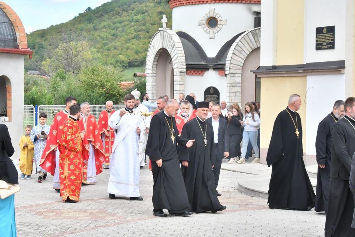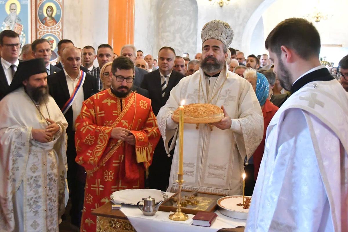 На крају свете литургије Високопреосвећени мтрополит Методије обавио је чин резања славског колача преломивши га са кумом крсне славе храма Господином Владимиром Џајићем из Војковића. Као што налаже традиција, послије резања колача уследила је трократна литија око светог храма.